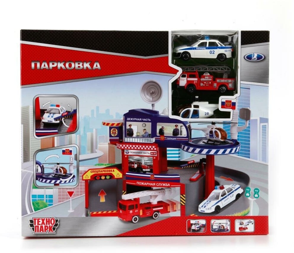 Купить Парковка Технопарк со спуском, 2-мя металл. машинами и вертолетом