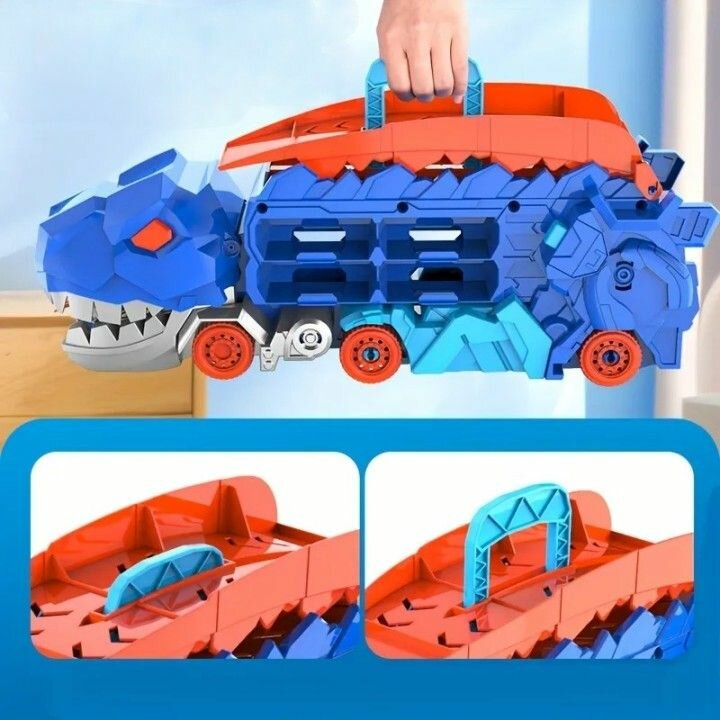 Игровой набор "Динозавр-Автовоз", с 4 машинками, металл, интерактивный, синий интересное:
