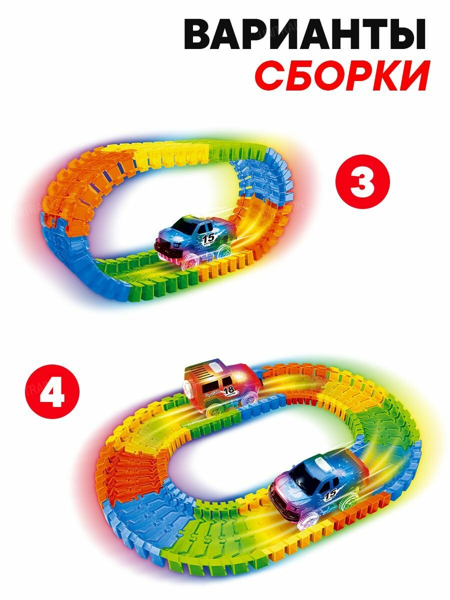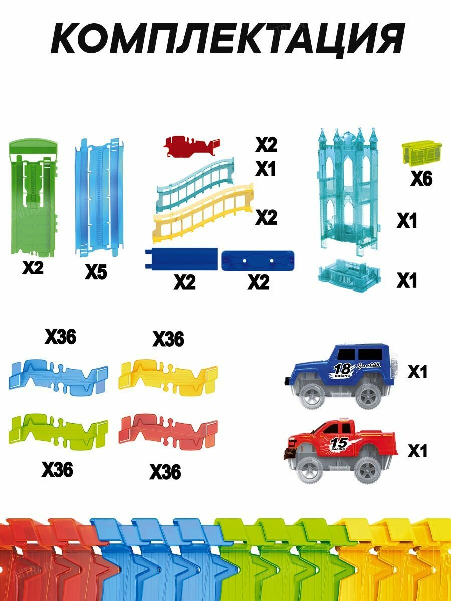 Купить Автотрек с машинками, со светом и звуком,169 деталей,390 см