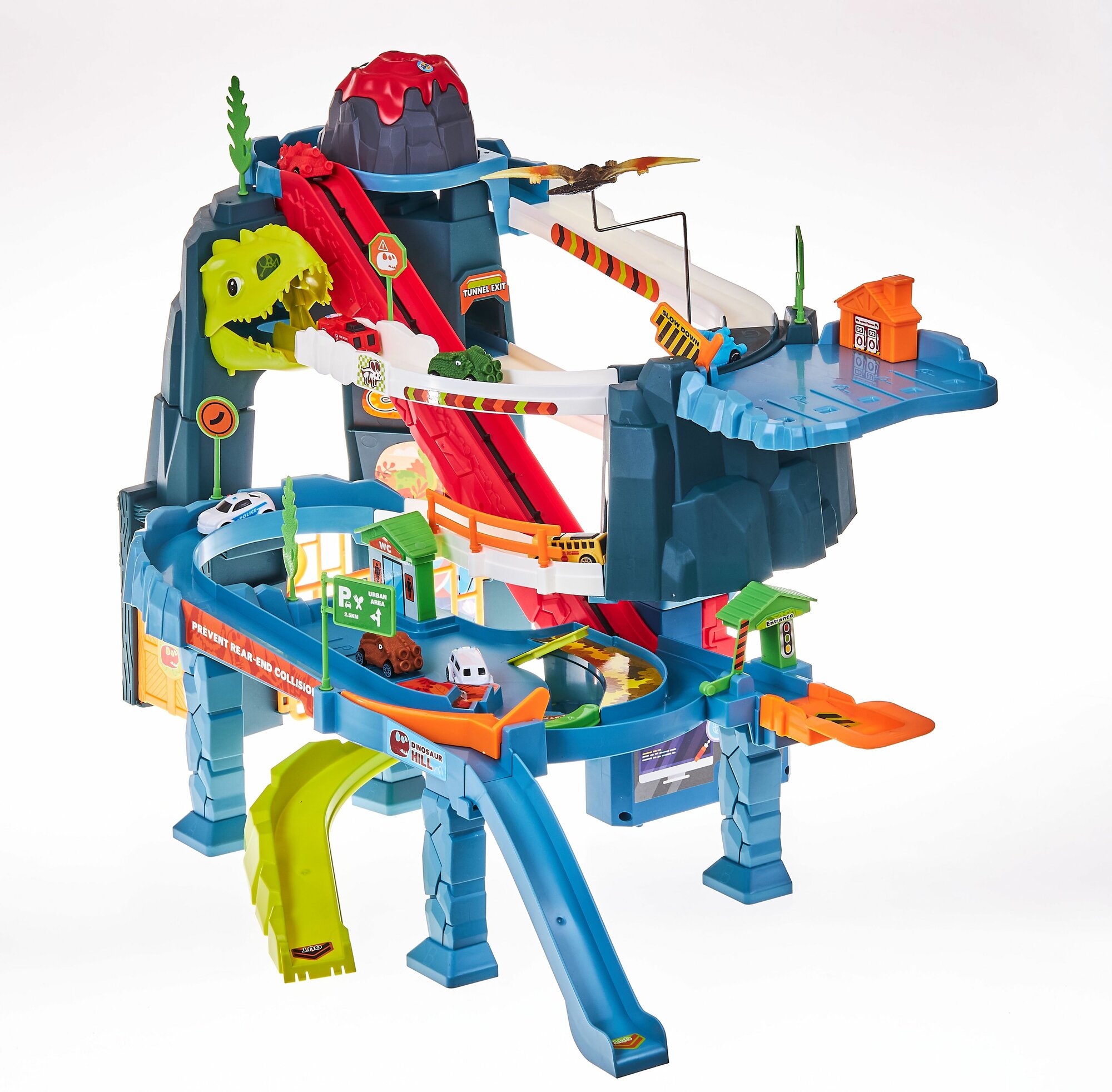 Купить Автотрек с машинками Вулкан динозавров свет, звук, эффект дыма