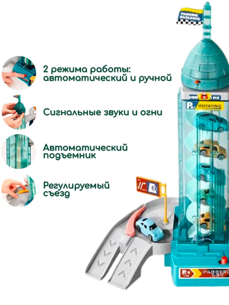 Автотрек парковка гараж Лев 67 см звук свет автолифт 4 машины