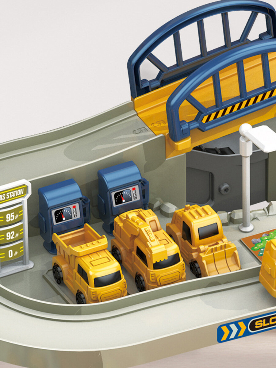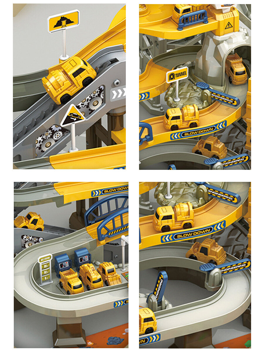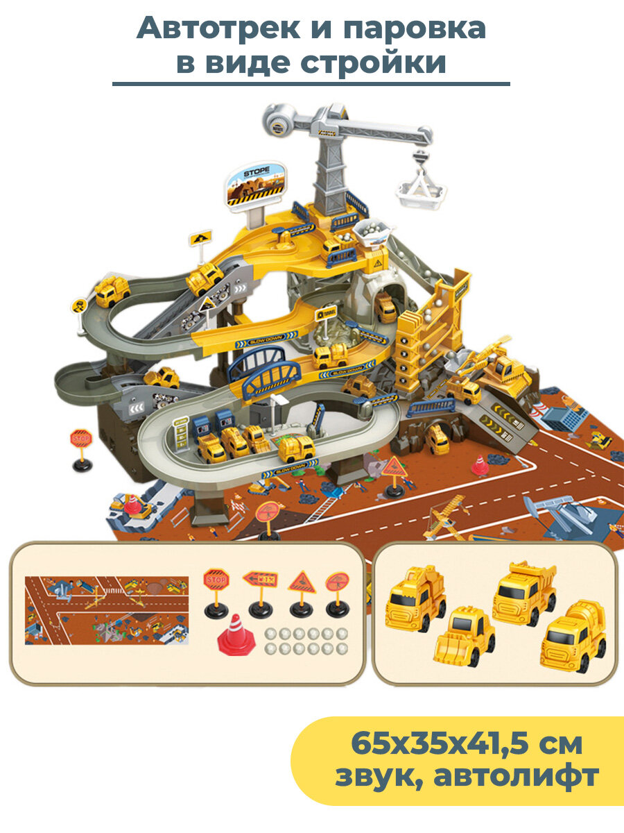 Купить Автотрек парковка гараж стройка с краном 65х35х41,5 см звук автолифт 4 машины