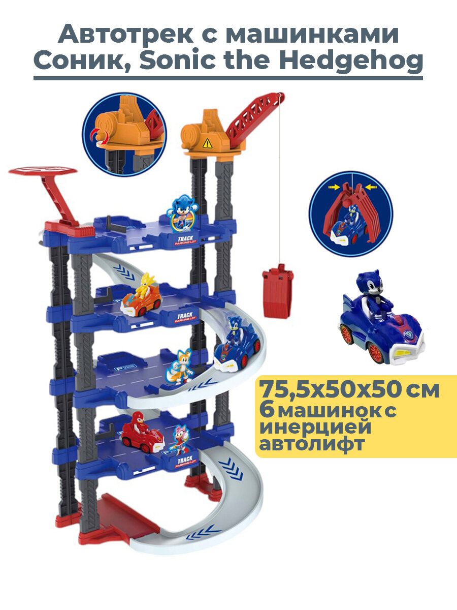 Купить Автотрек парковка с машинками Соник Sonic the hedgehog сборный 4 уровня автолифт 6 машинок инерция 75,5x50x50 см