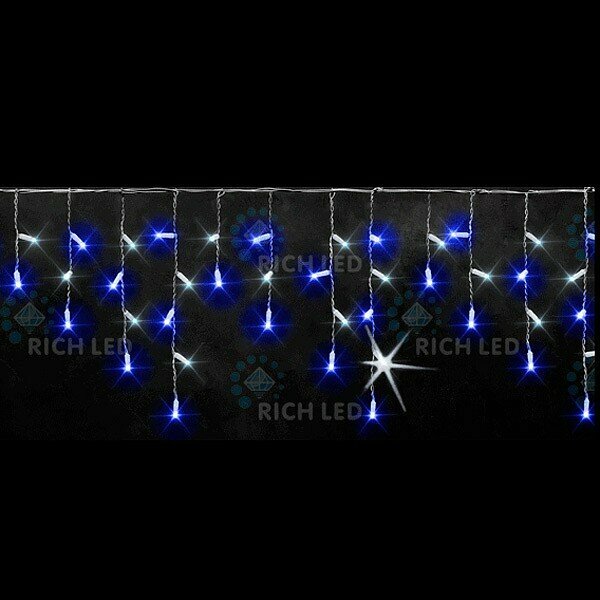Гирлянда светодиодная Бахрома сине-белая 220B, LED, провод прозрачный, IP54 Rich LED RL-i3*0.5-T/BW