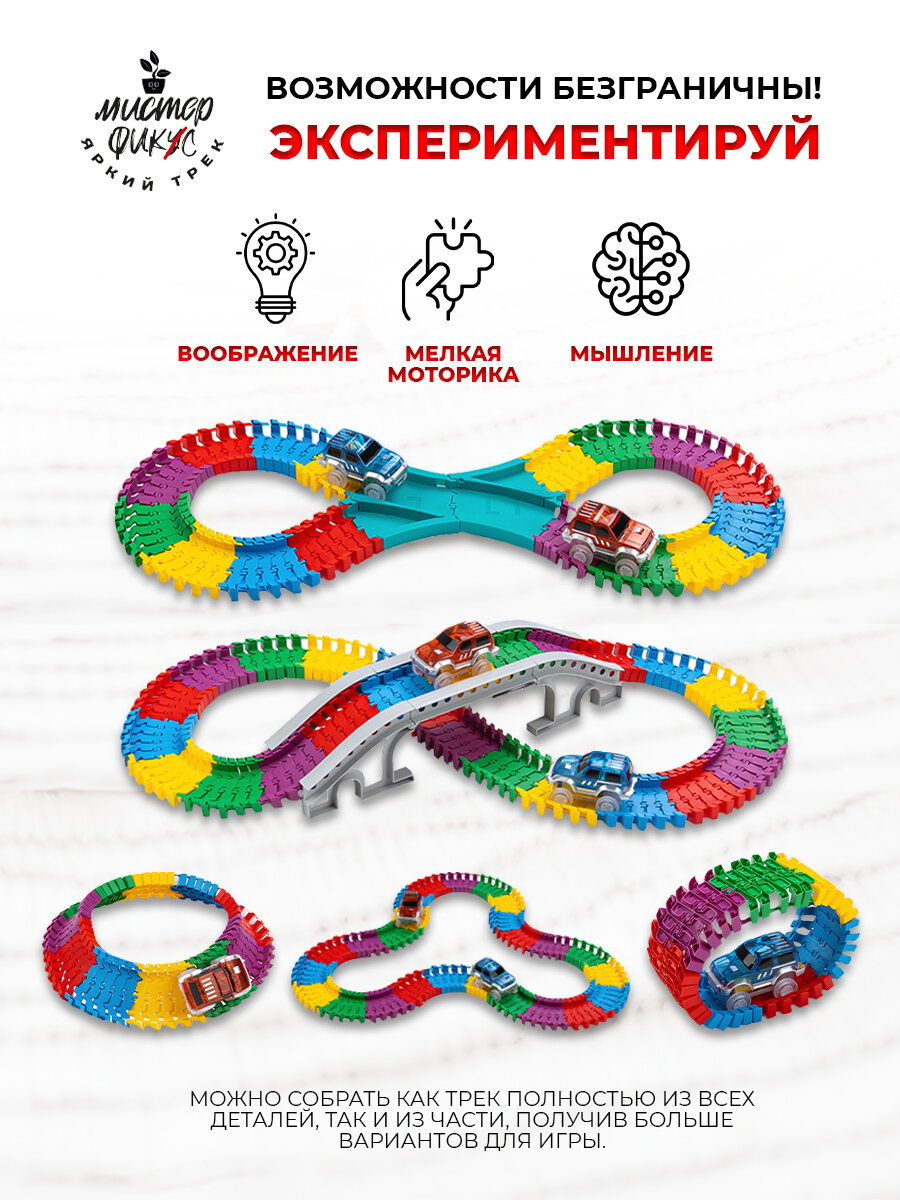 Автотрек с машинками, гибкий гоночный трек 400 деталей интересное: