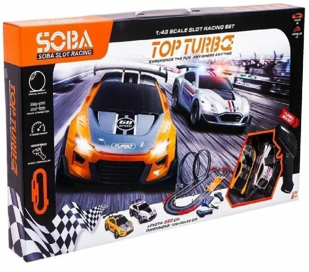 Купить Детский гоночный автотрек с 2 машинками на пульте управления, работает от адаптера или батареек, длина трассы 560 см