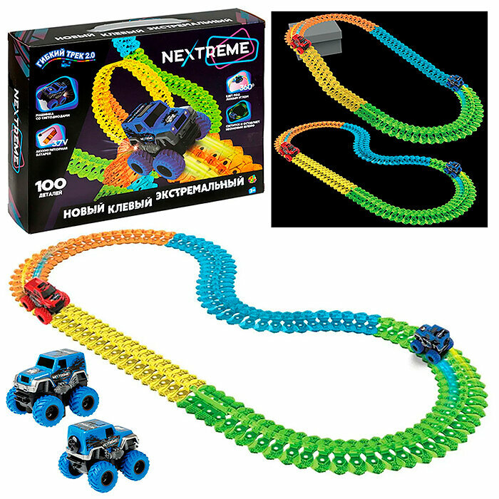 Купить Гибкий трек со светящейся машинкой 1Toy NEXTREME, гоночная трасса, дорога, автотрек, 100 деталей
