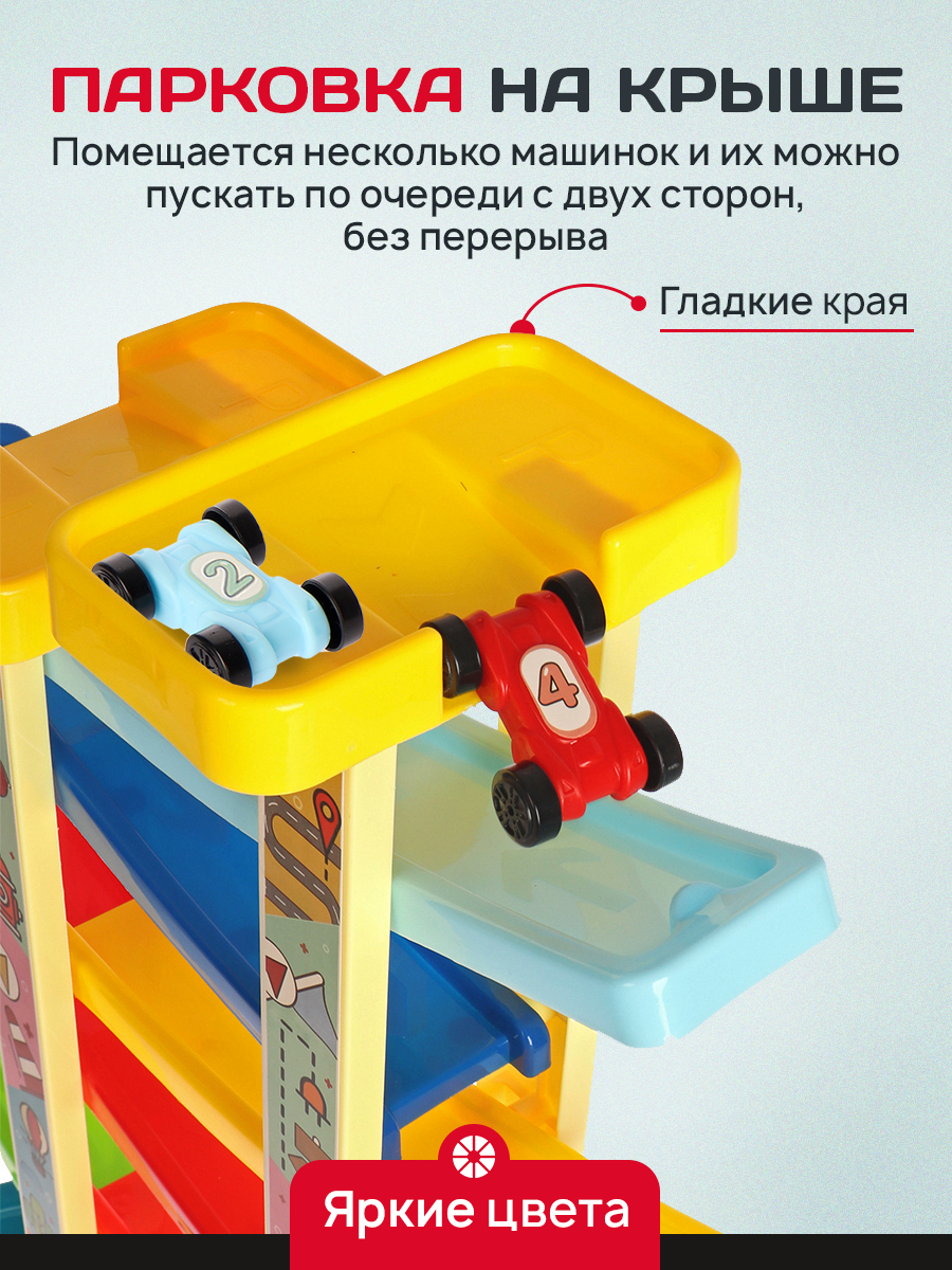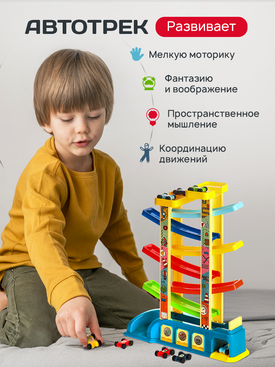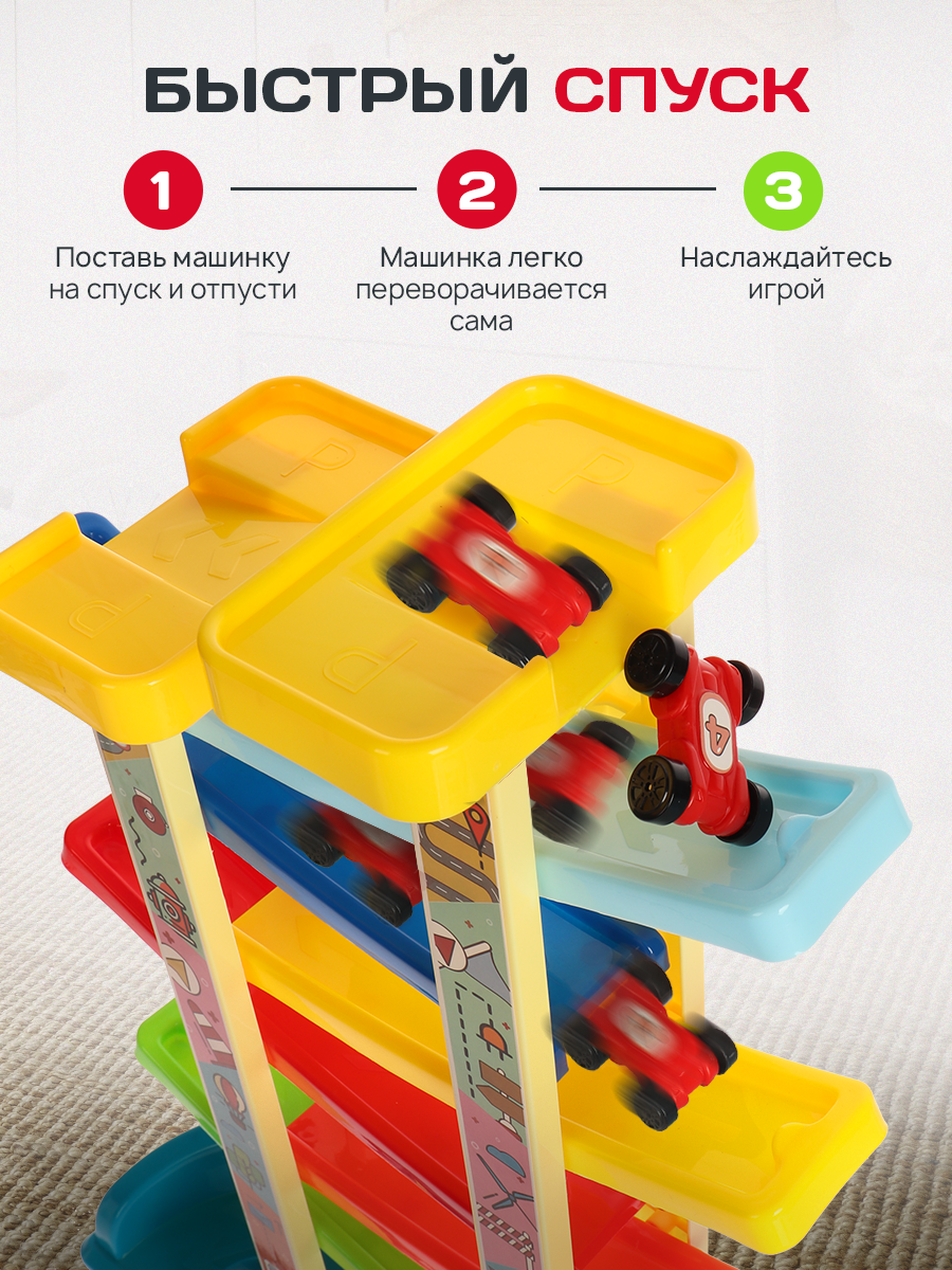 Купить Гоночный автотрек (8-уровневый, 8 гоночных машинок, подвижные элементы, размер 35х12х45 см)