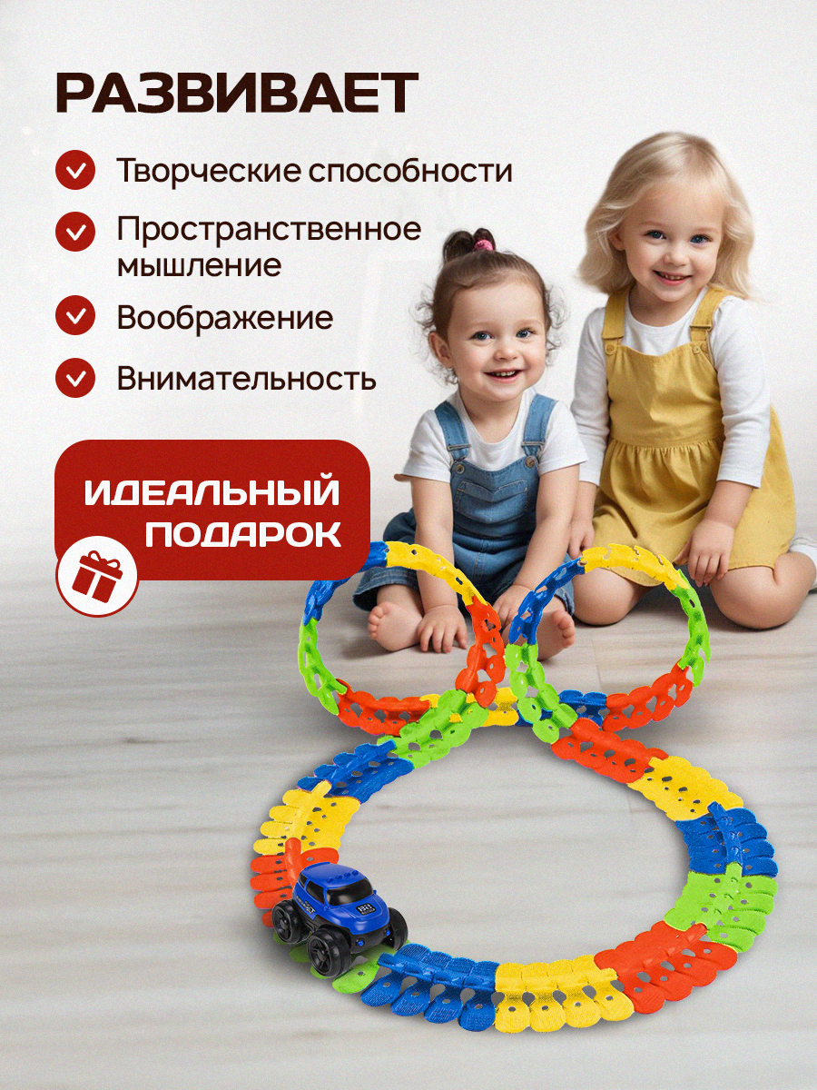 Автотрек "скоростная гибкая трасса" длина 240 см. (35х26 см, 1 машинка, на батарейках, в коробке) Артикул 2175743 интересное:
