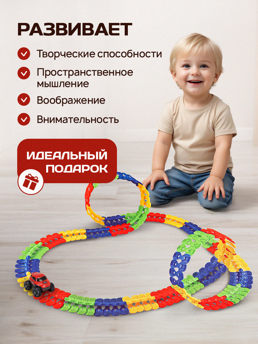 Автотрек (41,5х31 см, 1 машинка, длина трека 360 см, на батарейках, в коробке) Артикул 2175741 интересное: