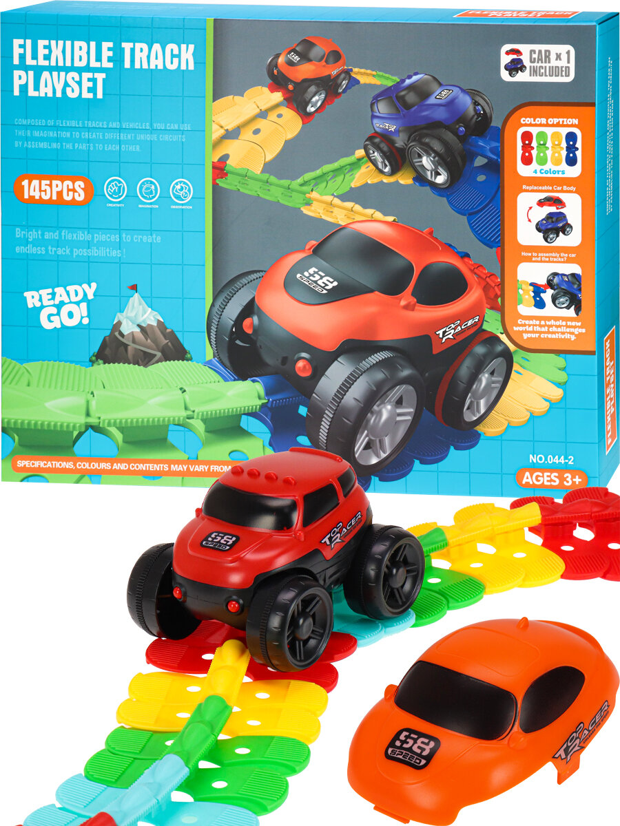 Автотрек с машинками, Veld Co / 138 деталей / Детский трек на батарейках с динозаврами