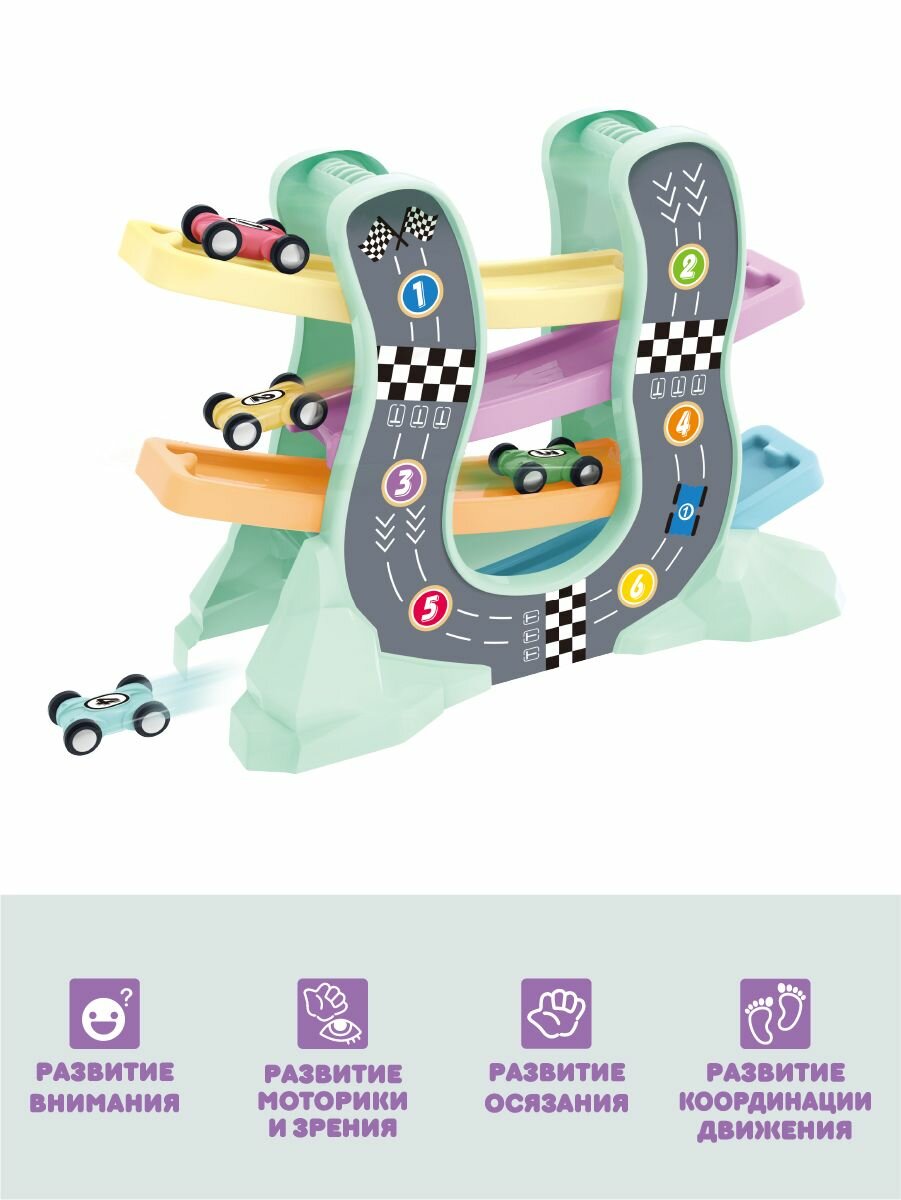 Купить Детский автотрек с машинками 4 шт, Ути Пути / Гравитационный трек-горка для машин