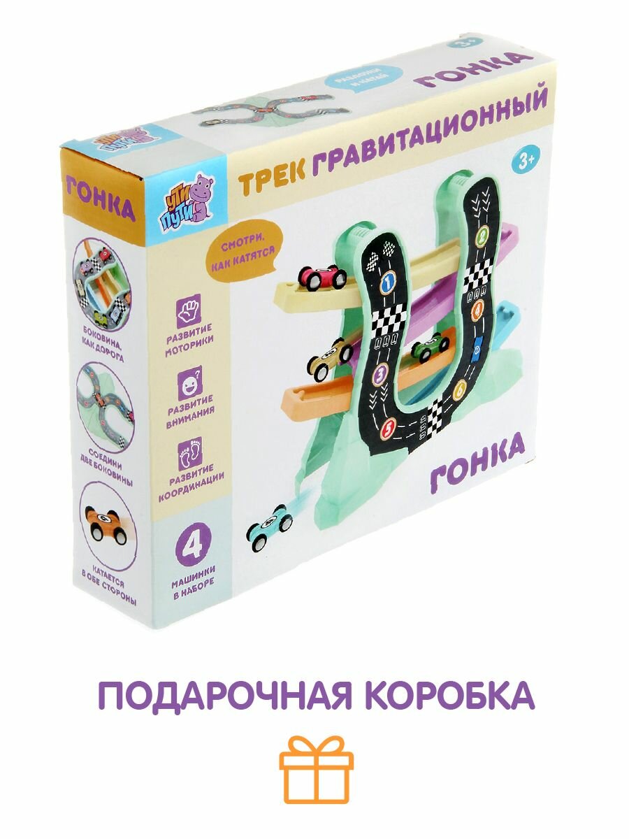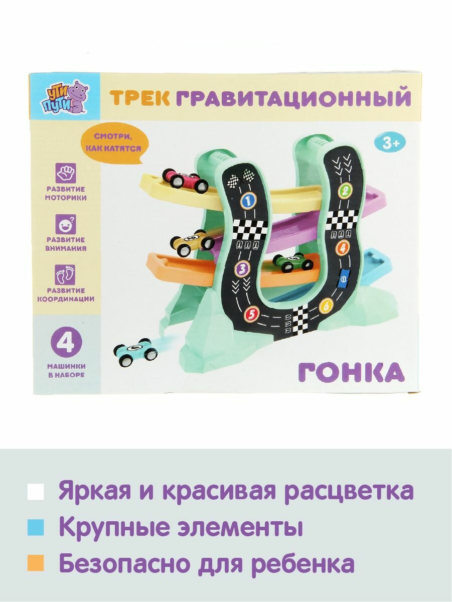 Детский автотрек с машинками 4 шт, Ути Пути / Гравитационный трек-горка для машин интересное: