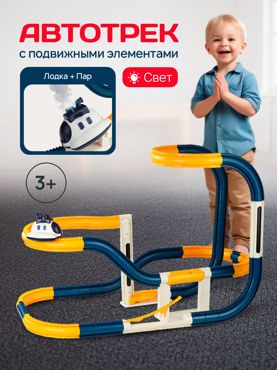 Автотрек с лодкой (73х39х47.5см) свет, пар, трамплин, лифт, на батарейках. Артикул Y26938007 интересное: