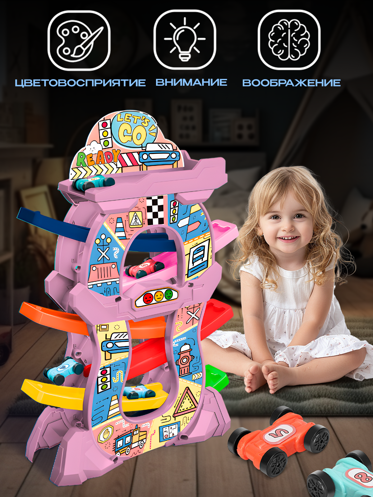 Автотрек с машинками WiMi, парковка интерактивная многоуровневая