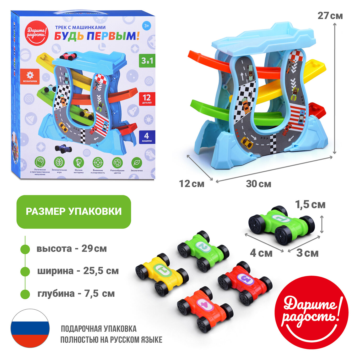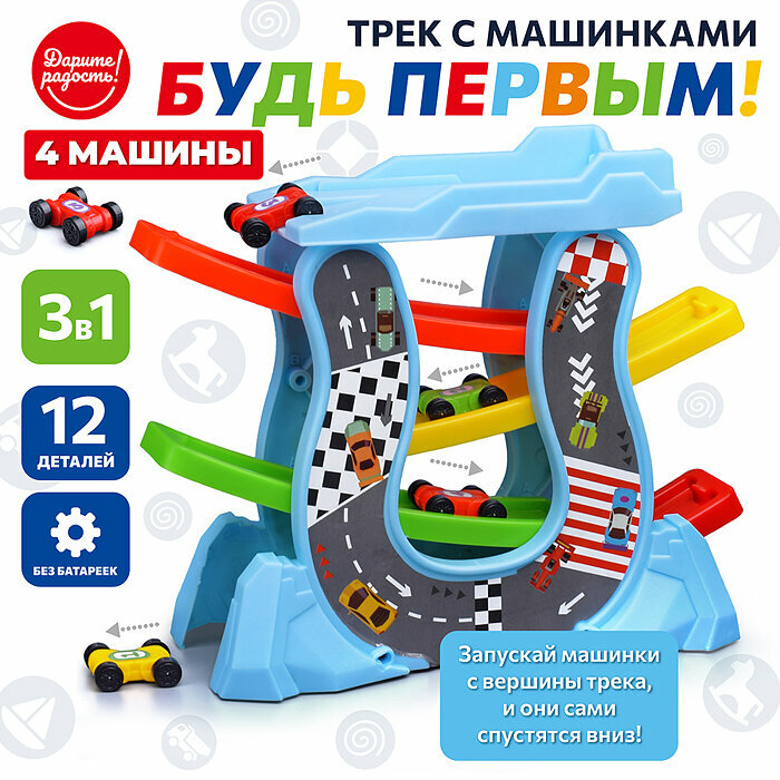 Купить Автотрек 3 в 1 с машинками "Будь Первым", 30x27x12 см Дарите радость!