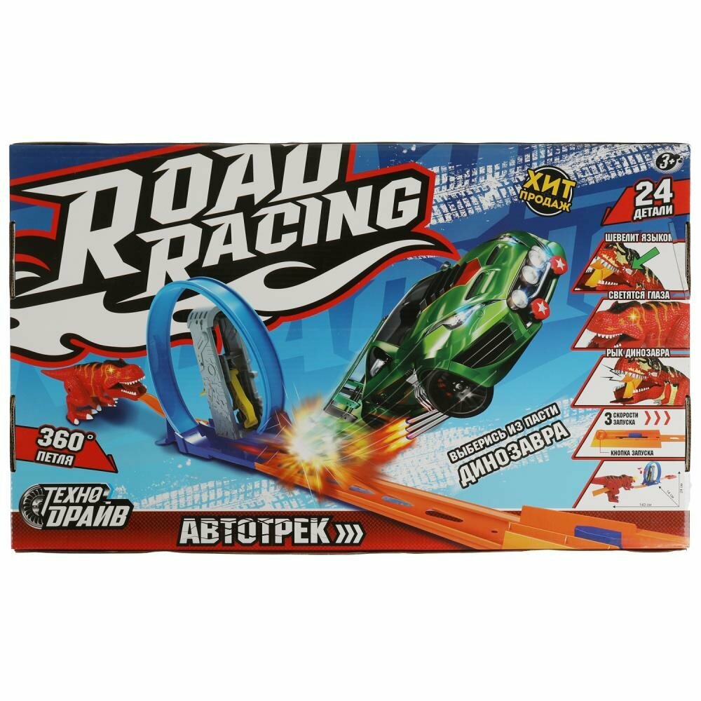 Купить Технодрайв Автотрек Road racing с катапультой Динозавр 2012С109-R с 3 лет