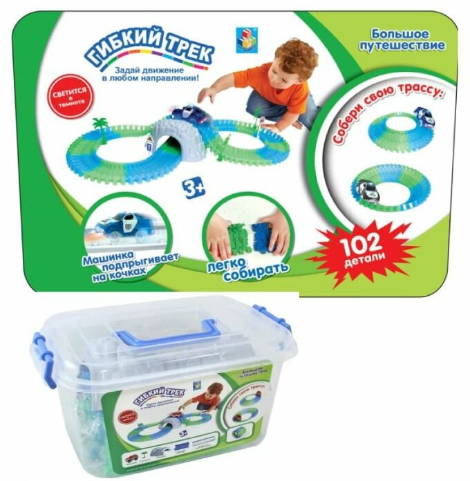 Купить Гибкий трек "Большое путешестви" 105 деталей, светится в темноте, пластиковый короб