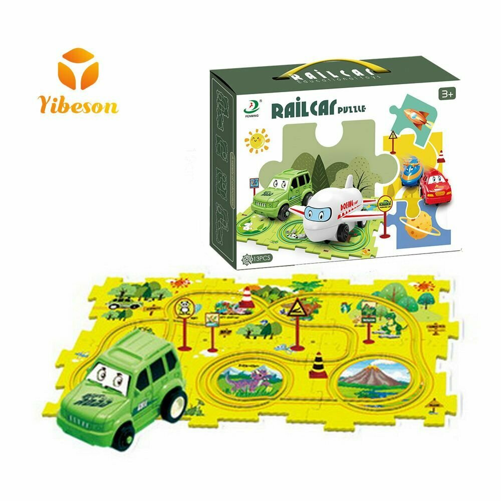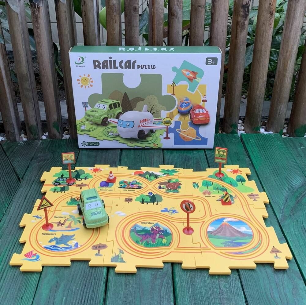 Купить Детский коврик пазл гоночный трек с машинками FENMING серии Динозавры , 8 пластин