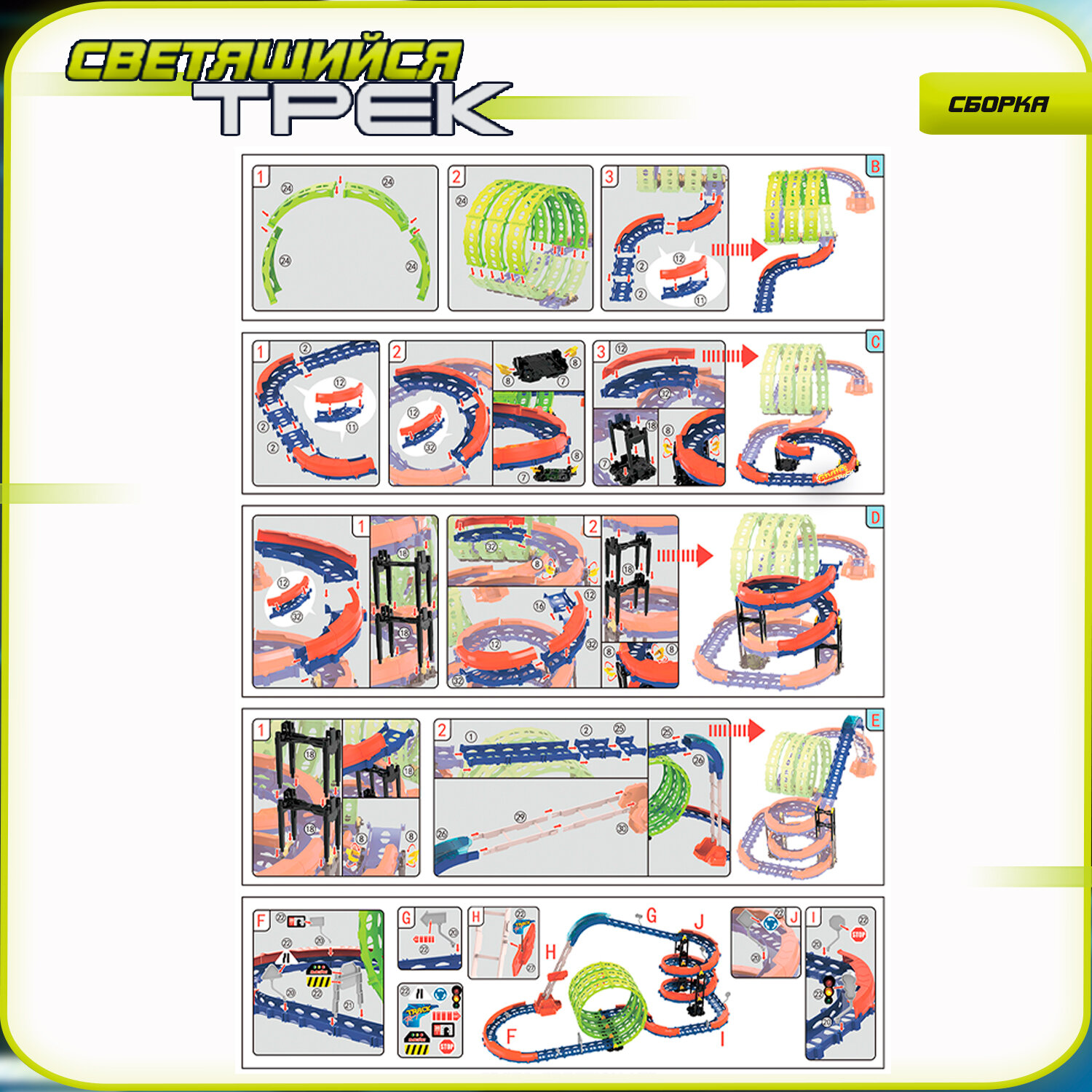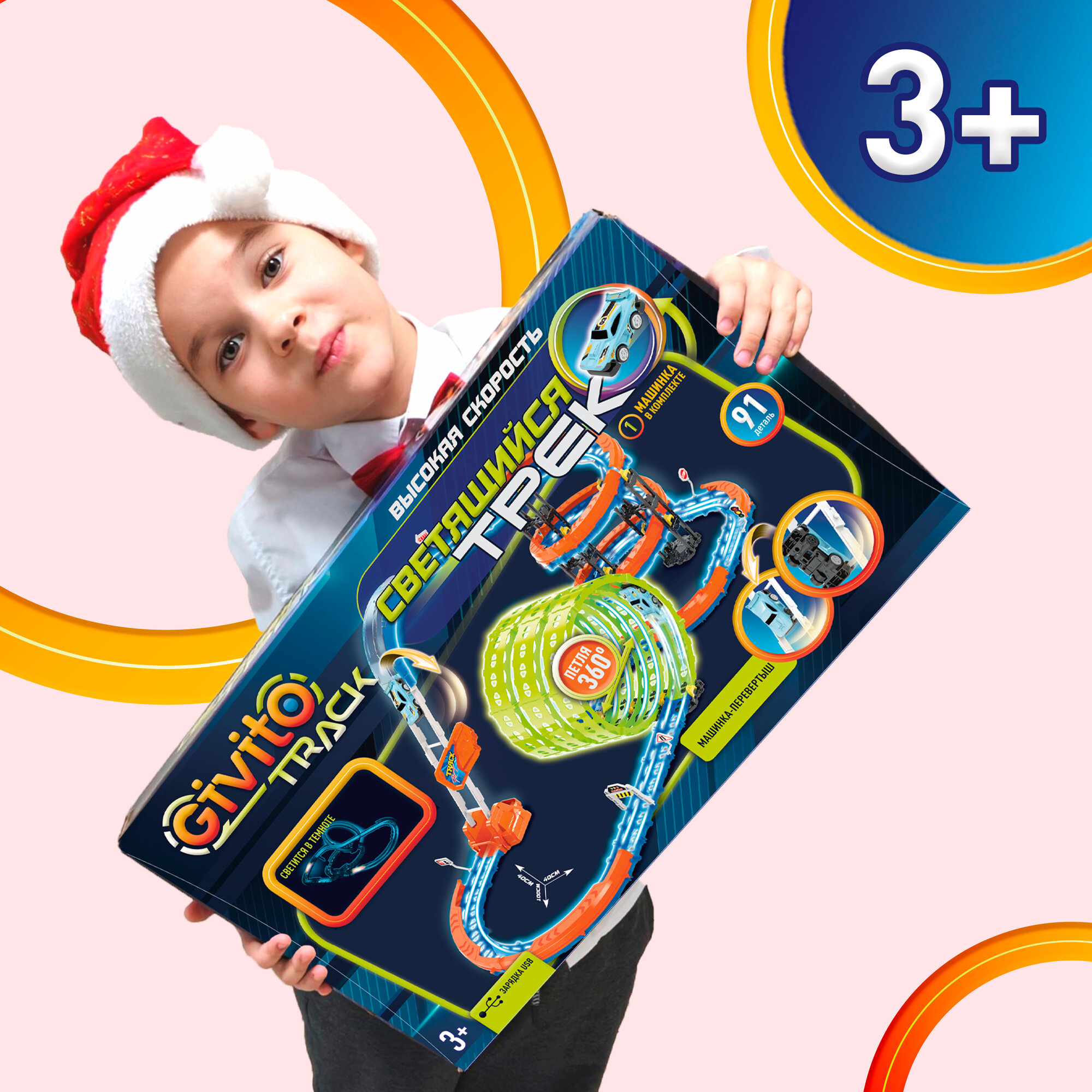 СохранитьДетский гоночный светящийся гибкий автотрек Givito с машинкой-перевертышем (3 петли 360°), 91 деталь G2412-497 интересное: