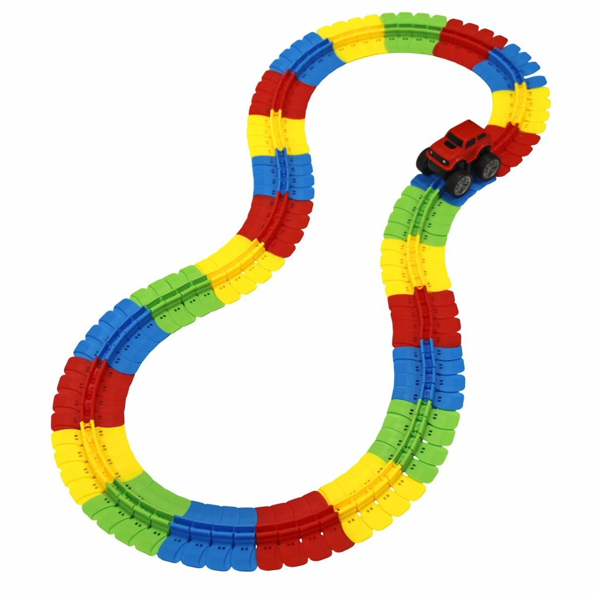 Автотрек с машинками, Veld Co / 138 деталей / Детский трек на батарейках с динозаврами