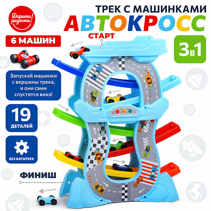 Автотрек 3в1 с машинками "Автокросс" с машинками, 32х12х39.5 см, в коробке интересное: