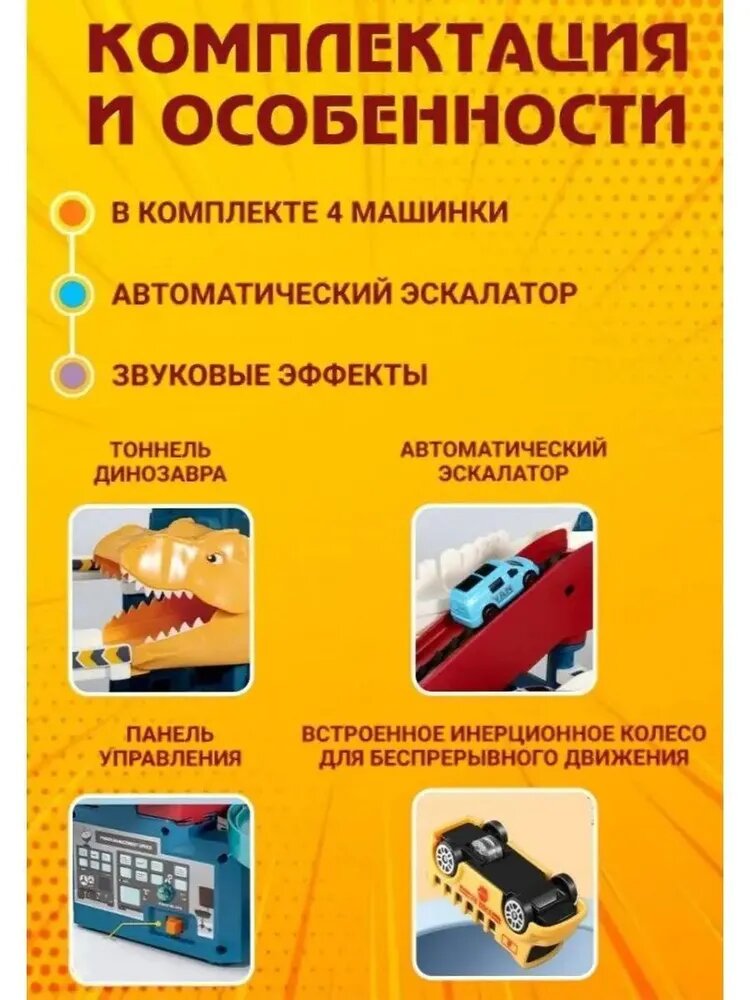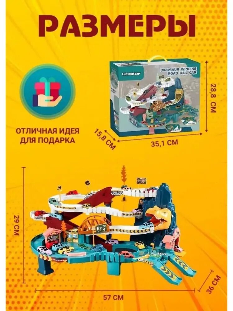 Автотрек парковка для машинок "Динозавр", детская игрушка для мальчиков интересное: