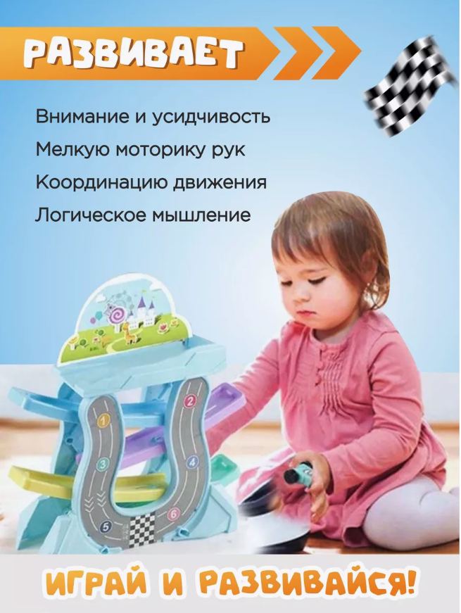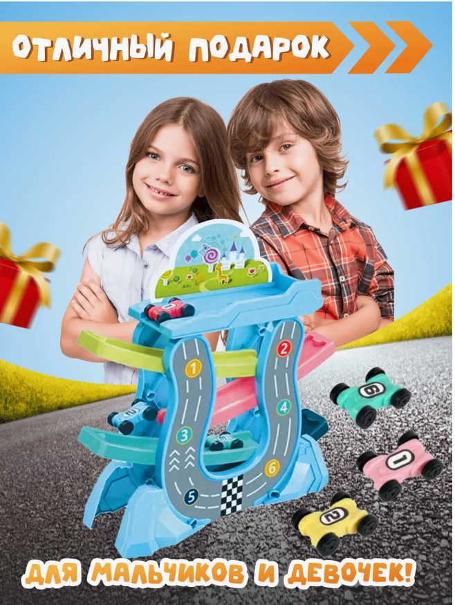 (гоночный) Автотрек с машинками игрушечный Весёлые горки интересное: