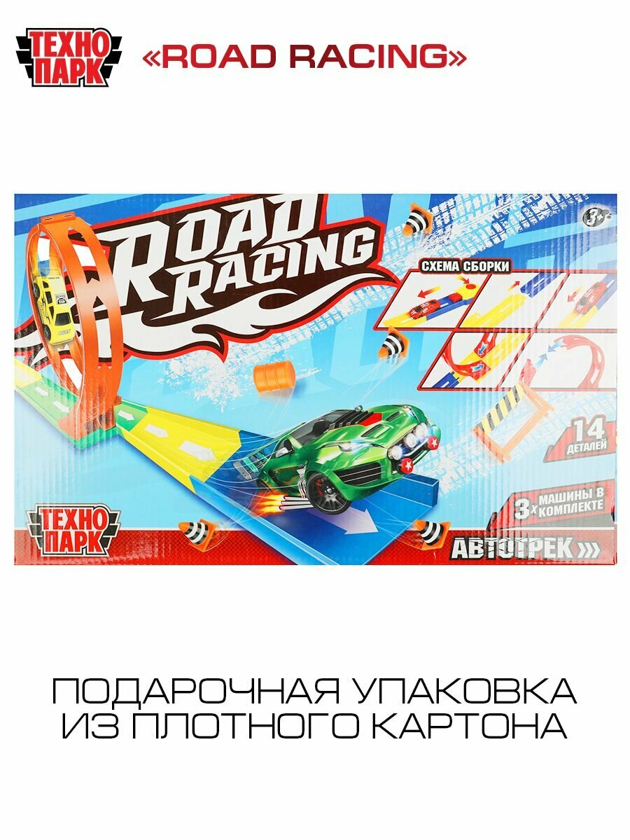 Купить Автотрек с машинками детский Технопарк Road Racing 3 машинки в наборе