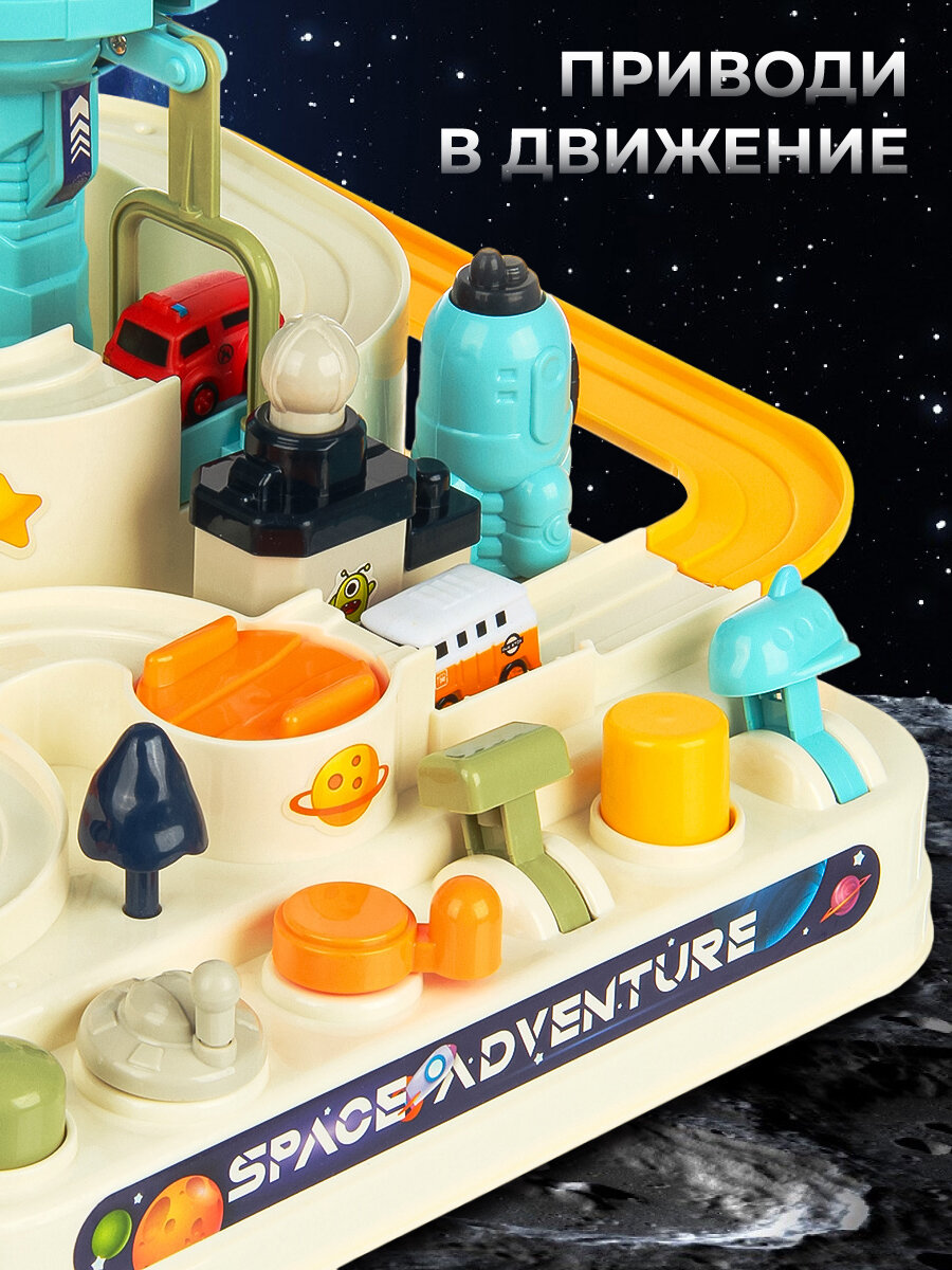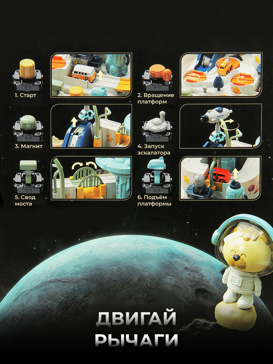 Интерактивный космический трек с машинками, 4 машинки в комплекте Veld Co 132678 интересное: