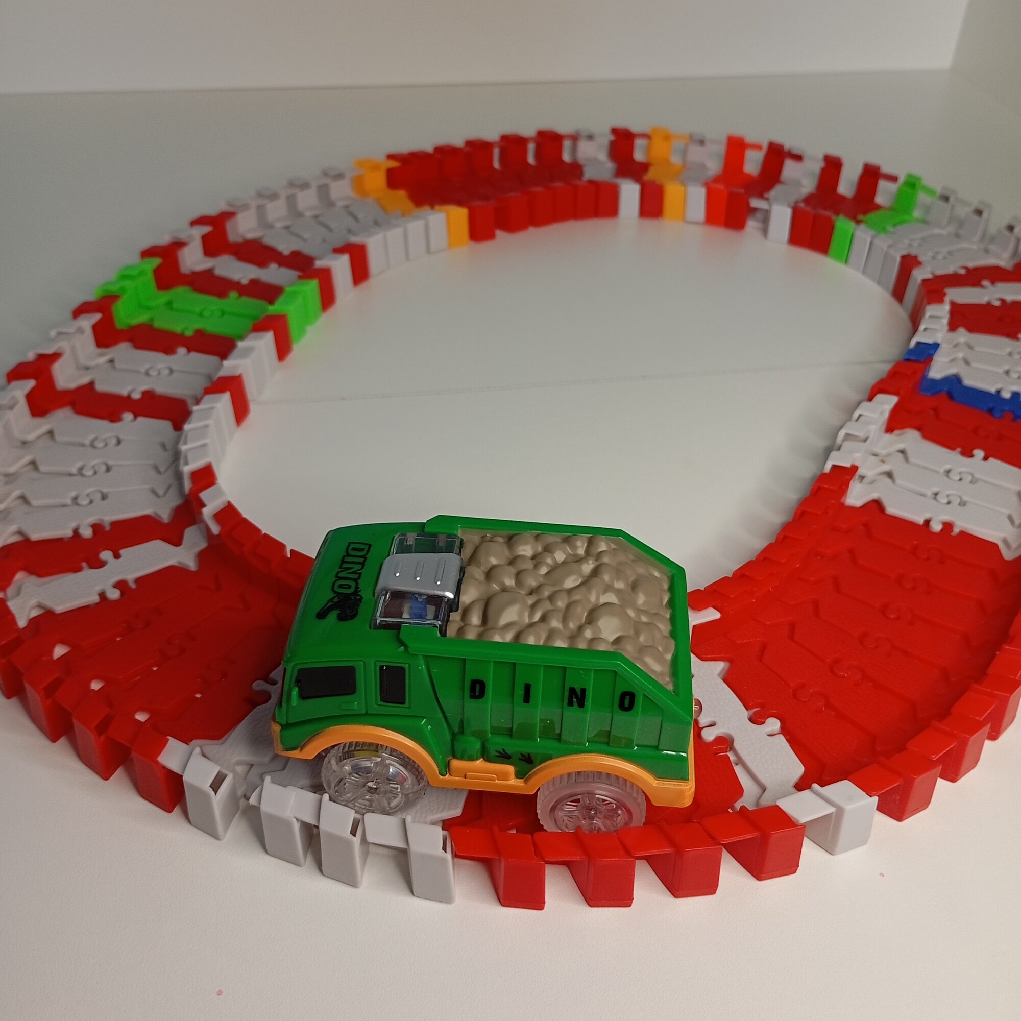 Автотрек с машинками, Veld Co / 138 деталей / Детский трек на батарейках с динозаврами
