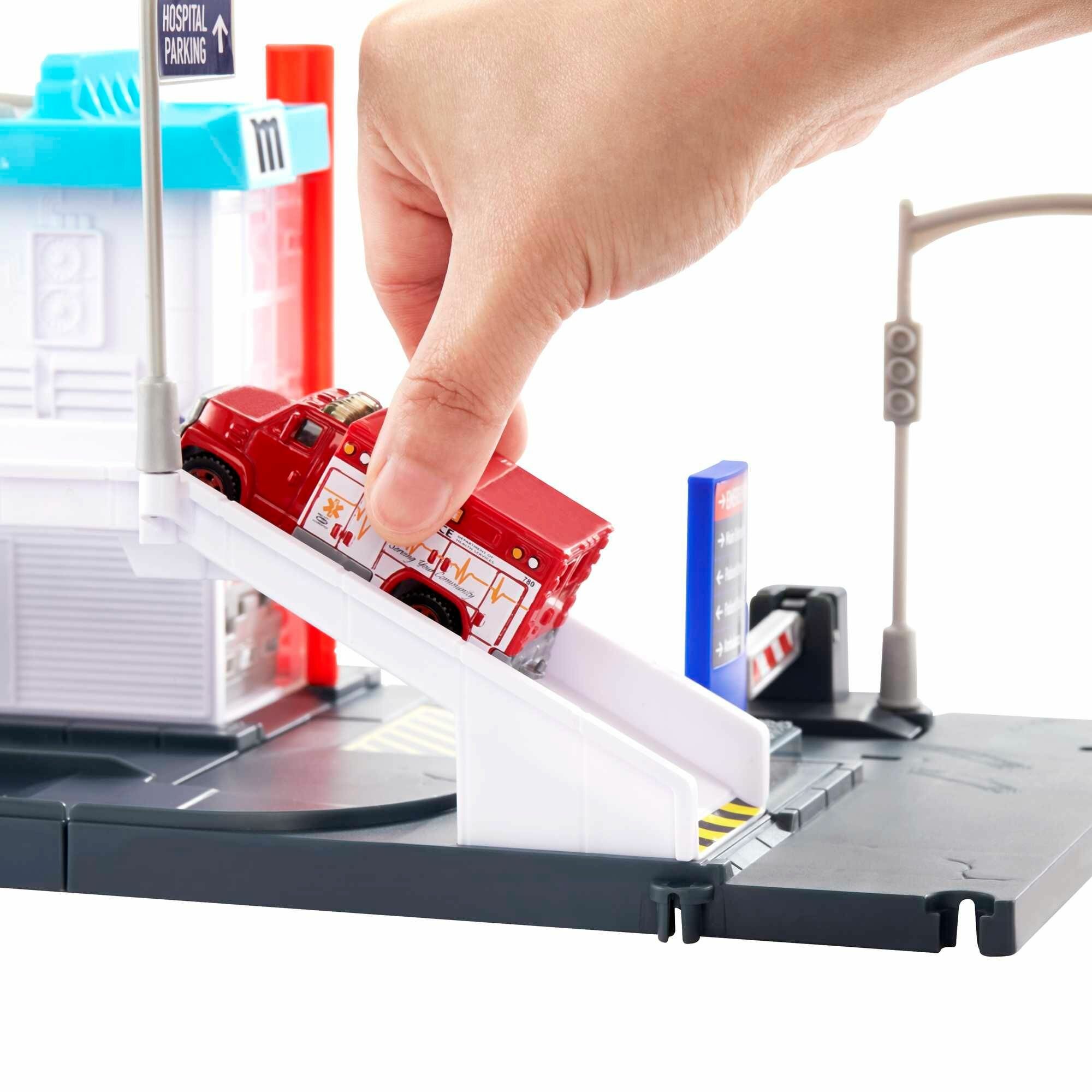 Купить Игрушечный трек Matchbox Action Drivers - Игровой набор Медицинская посадочная площадка с машинкой - GVY83