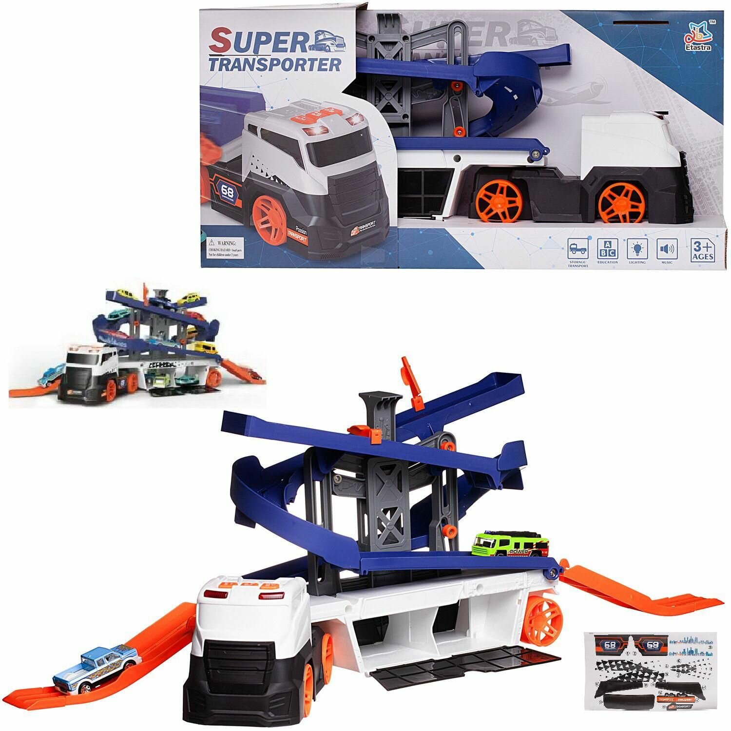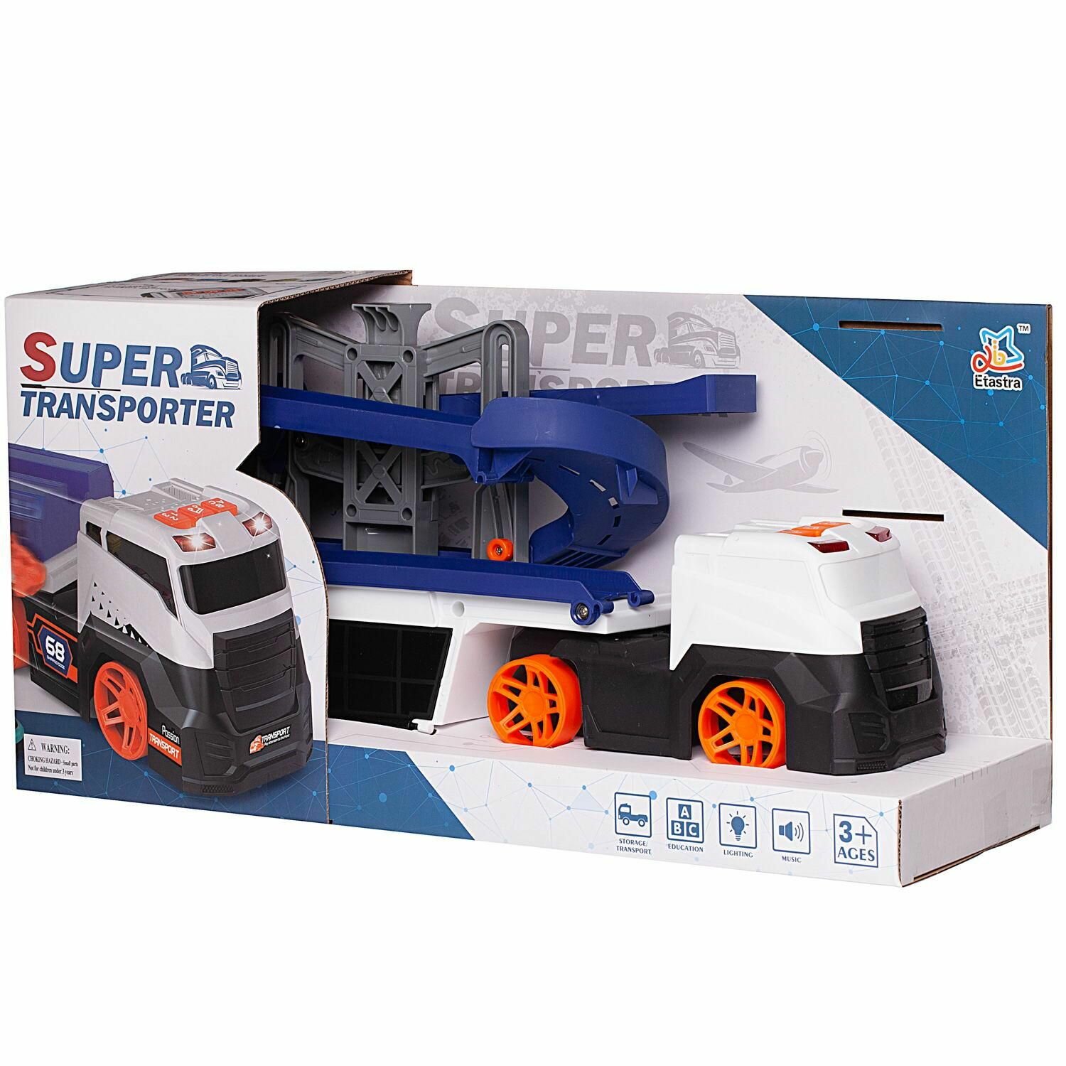 Купить Набор игровой Автовоз-трек-парковка с 2 съездами, 2 машинками, 3в1, со световыми и звуковыми эффектами, в коробке 50,5х14х24,5см