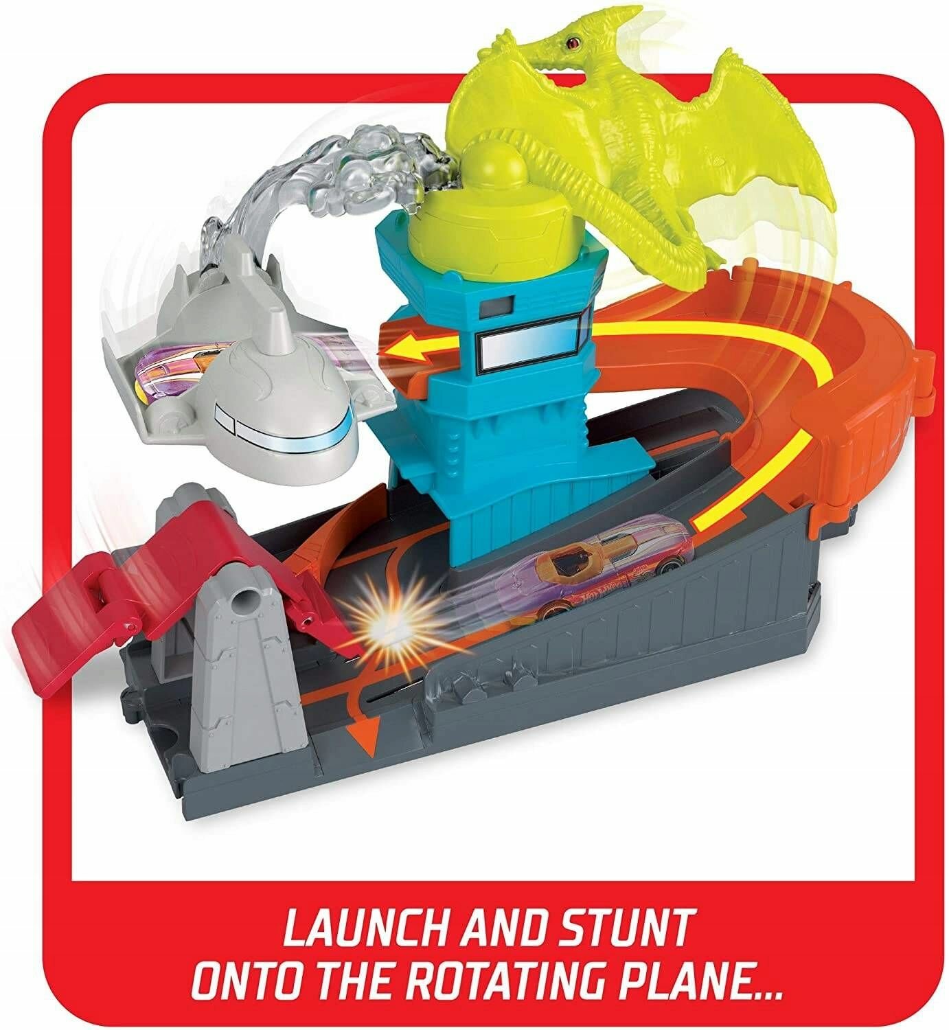 Купить Игрушечный трек Hot Wheels Action - Автомобильная трасса Аэропорт/ Атака птеродактиля + игрушечный автомобиль - Хот Вилс GBF94