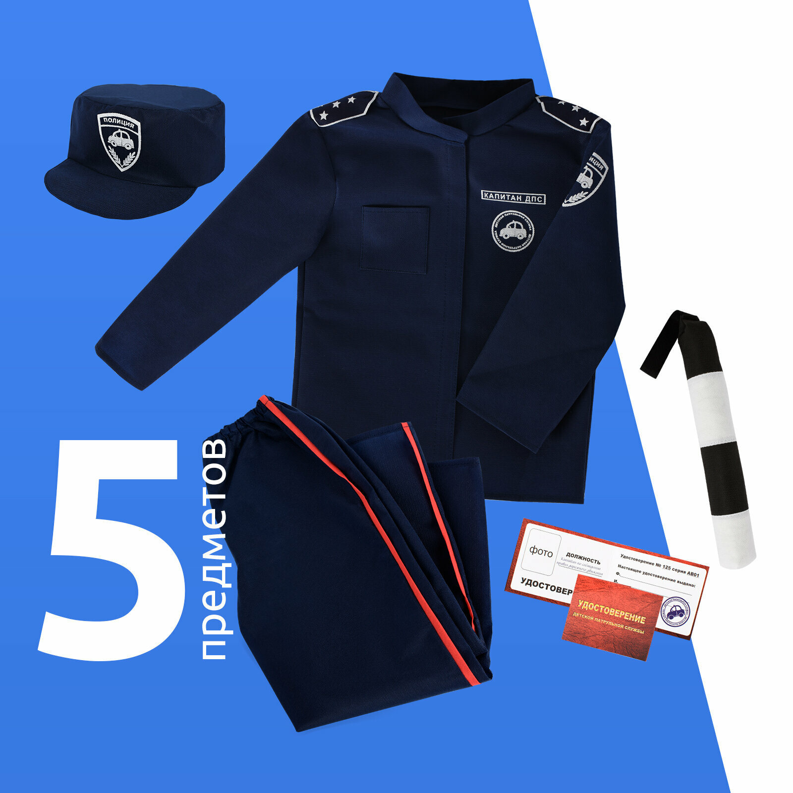 Набор полицейского детский форма ДПС MEGA TOYS карнавальный костюм для детей полицейский набор (куртка, штаны, кепка, удостоверение, жезл) интересное: