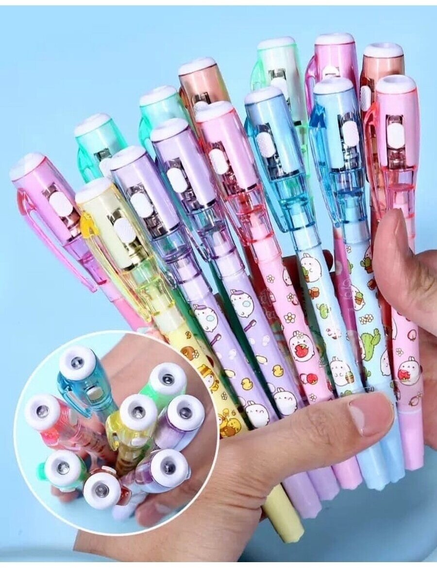 Купить Ручка-шпион с невидимыми чернилами + ультрафиолетовый фонарик + шариковая ручка розовая