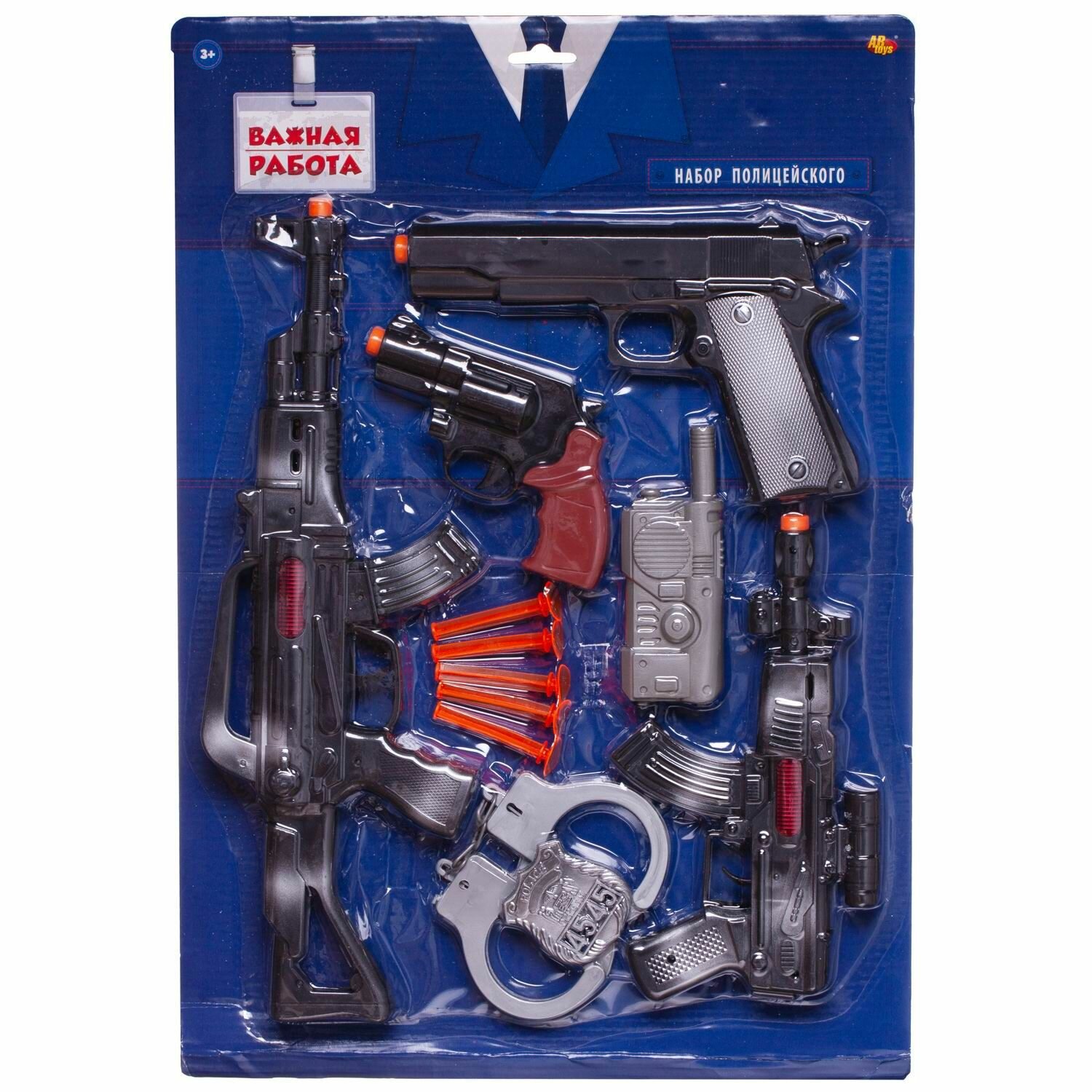 Важная работа. Набор полицейского игровой "Два автомата, два пистолета, рация, 5 пуль и наручники", на блистере интересное:
