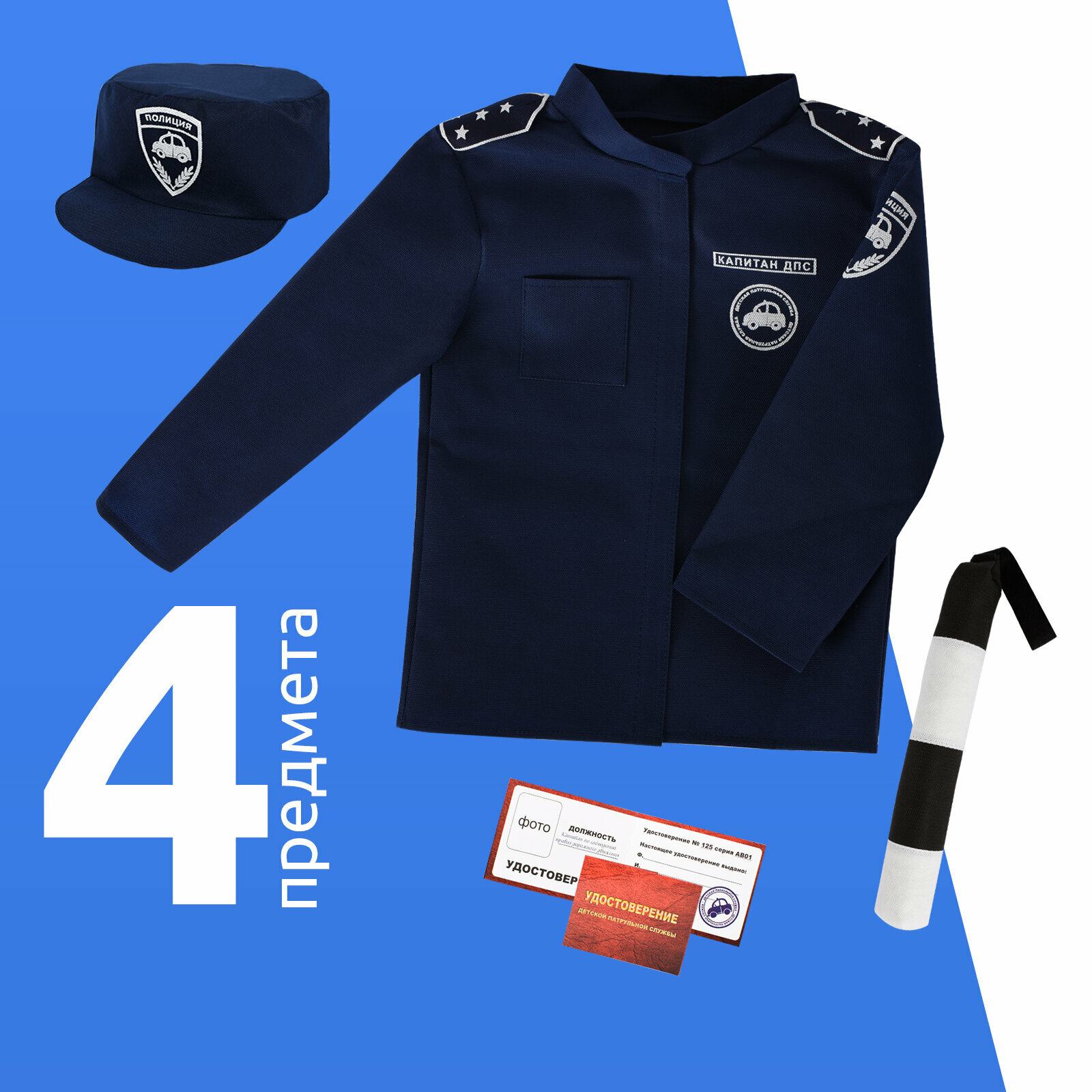 Набор полицейского детский форма ДПС MEGA TOYS карнавальный костюм для детей полицейский набор (куртка, кепка, жезл, удостоверение) интересное: