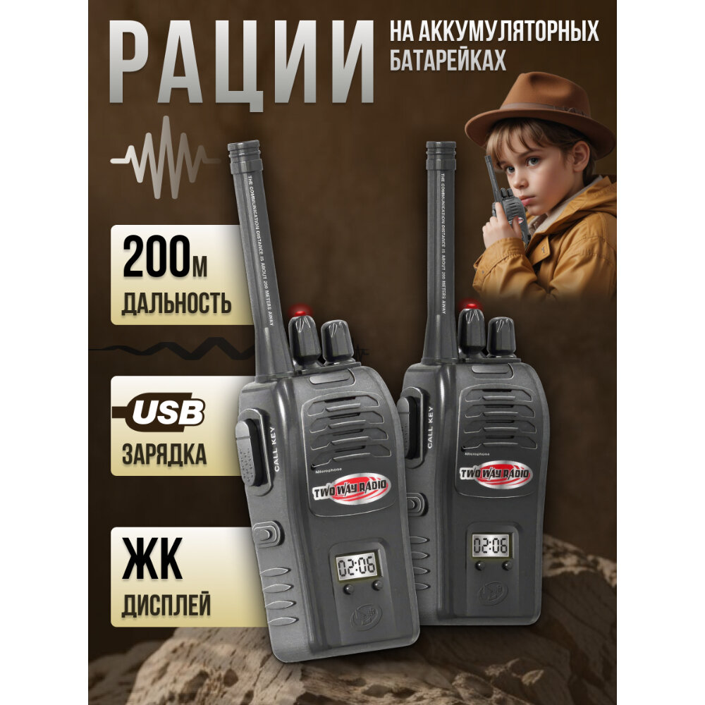 Игровой набор для детей электронные рации для передачи голосовых сообщений, радиус действия до 200 м, комплект 2 шт, подарок для мальчика интересное: