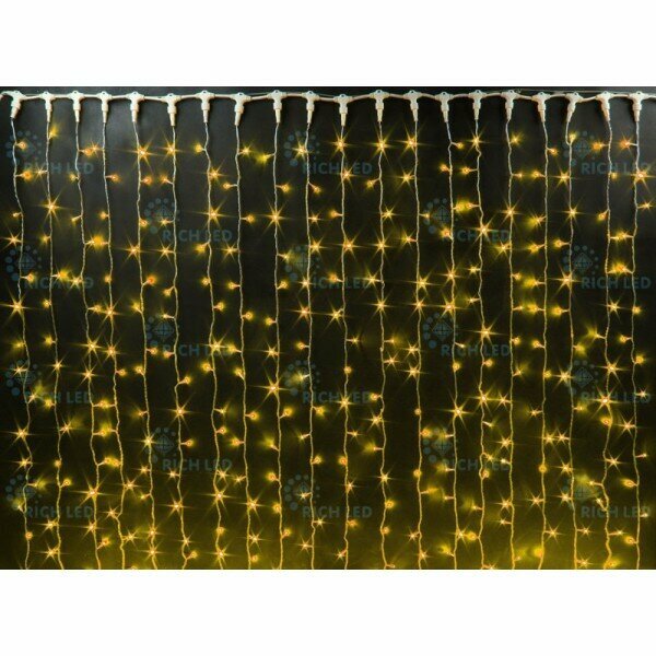 Свет Rich LED Гирлянда светодиодная Занавес желтая с мерцанием 220B, 1500 LED, провод белый, IP65 RL-C2*9F-CW/Y