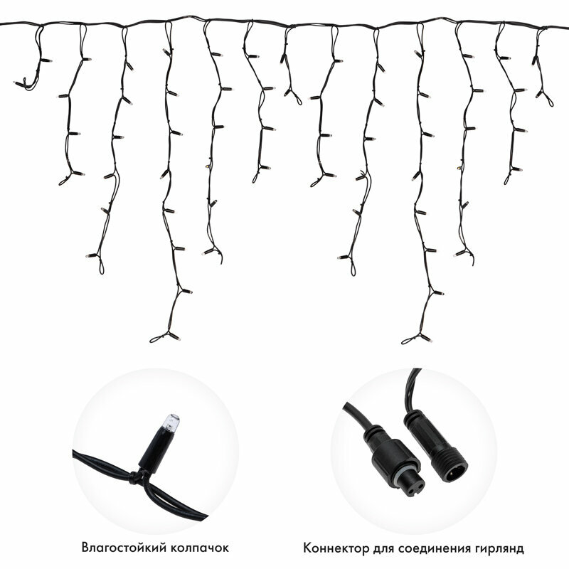 Гирлянда светодиодная Neon-Night Айсикл (бахрома) 3,2 х 0,9 м, черный провод каучук, 230 В, диоды белые, 120 LED