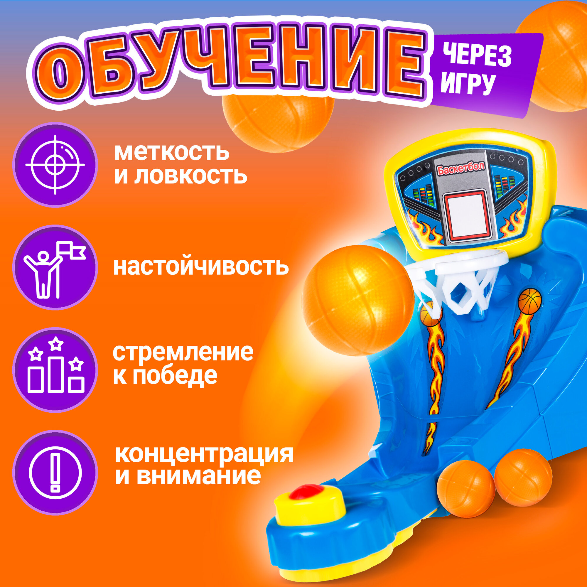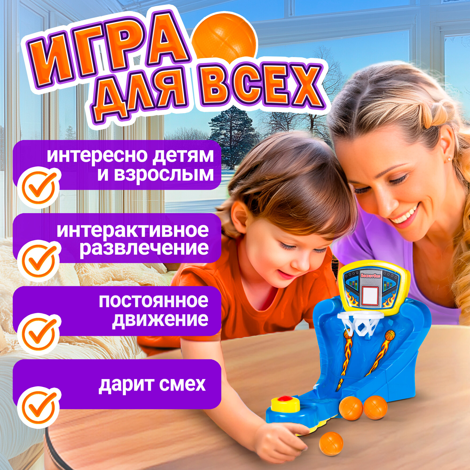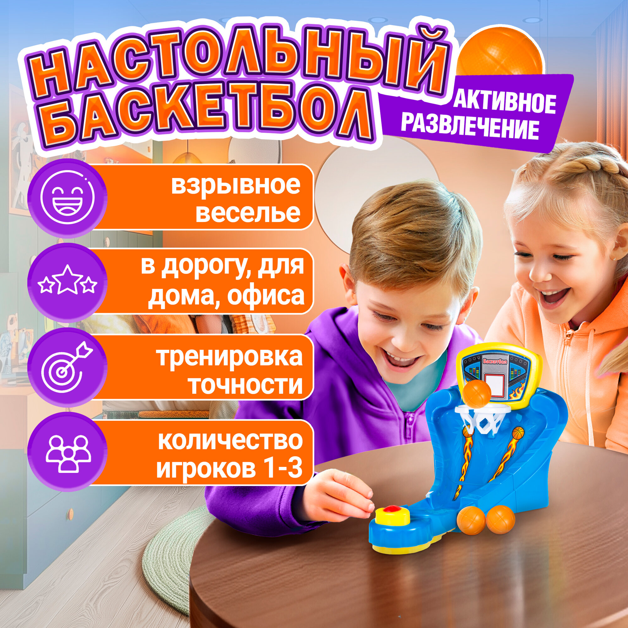 Настольная игра ИГРОДРОМ 1TOY Настольный баскетбол, для детей, семьи, развлечения, в дорогу, в поездку на поезде интересное: