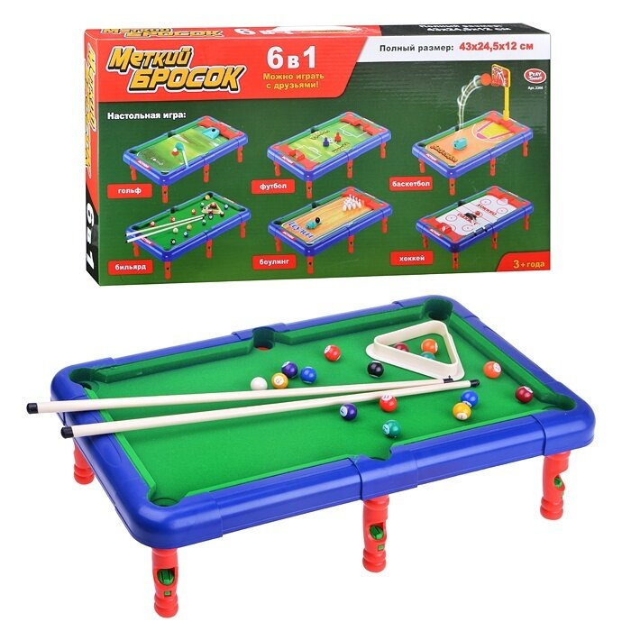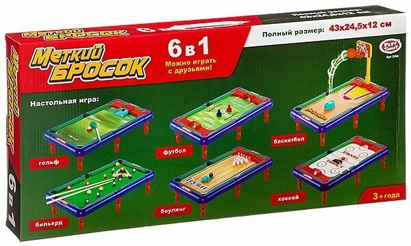 Купить Настольная игра для детей "Меткий бросок 6в1"(гольф, бильярд, футбол, боулинг, баскетбол, хоккей), PLAY SMART 2266