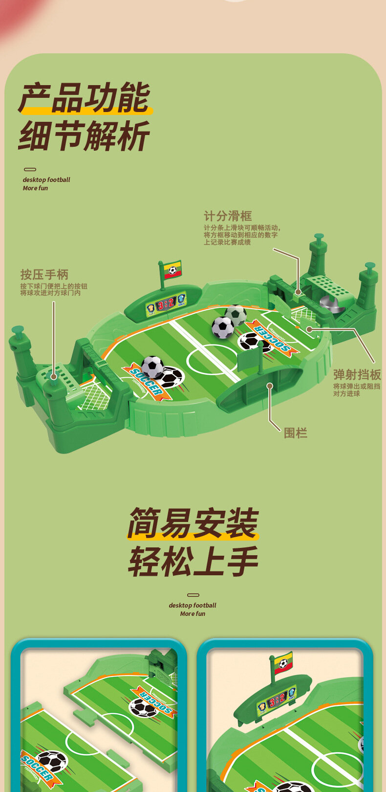 Настольный футбол "Детский", для двух игроков, с колокольчиками интересное: