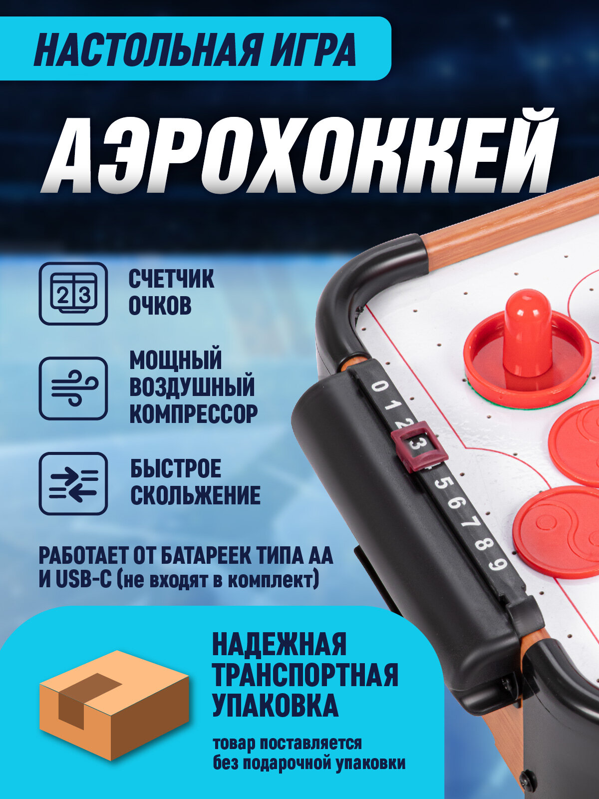 Настольная игра «Аэрохоккей», работает от батареек, от 2 игроков, 3+