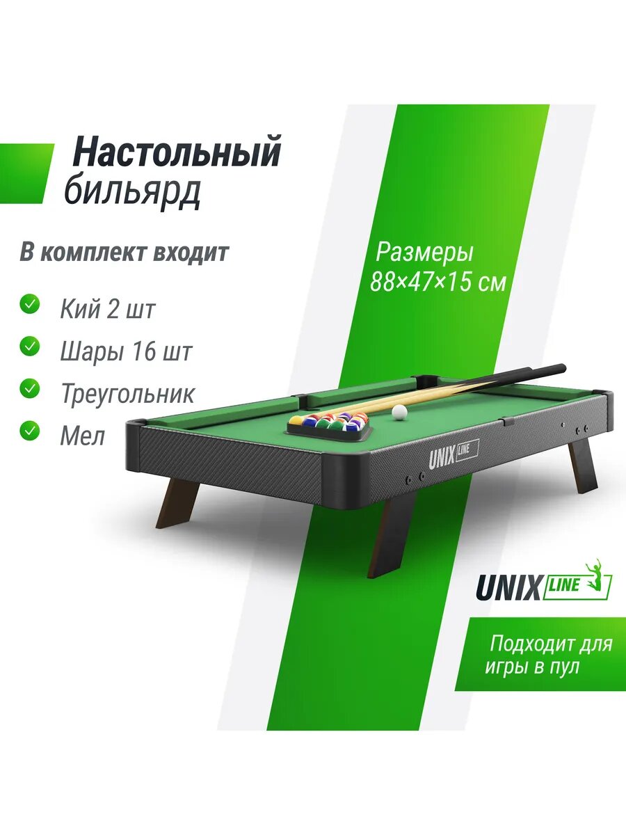Купить Бильярд настольный UNIX Line 88х47 cм Black мини игровой стол для детей и взрослых UNIXLINE
