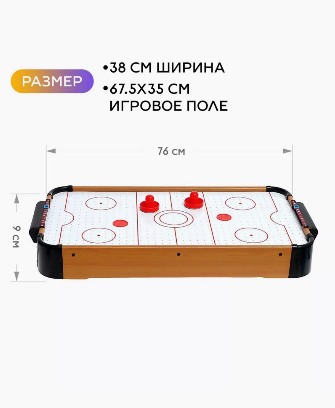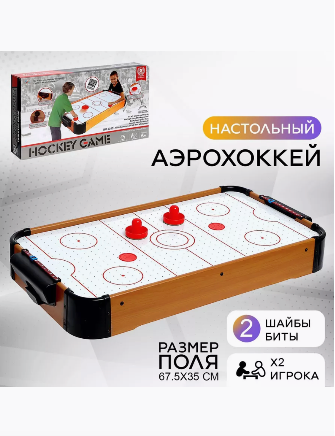 Настольный аэрохоккей «Хоккейная игра» –от бренда HOCKEY GAME для 2 игроков, с шайбами и битами интересное: