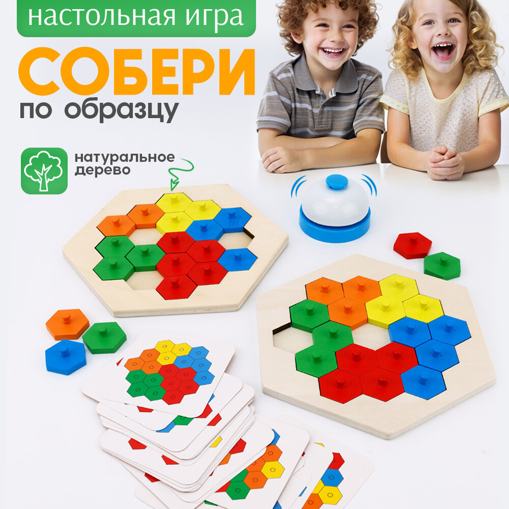 Купить Игра настольная "Собери по образцу. Соты", дерево, развивающая, 3-14 лет