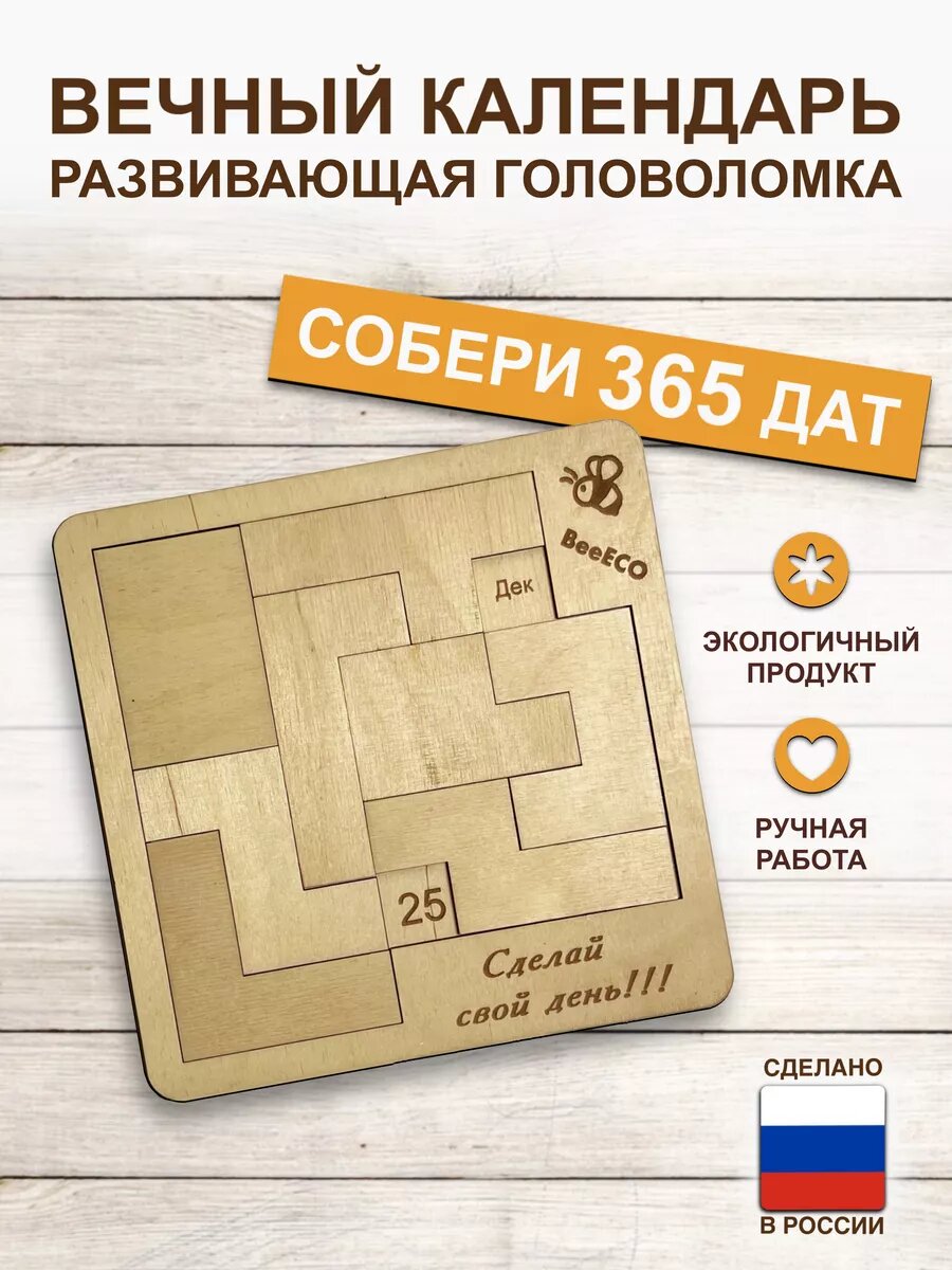 Купить Вечный календарь и Головоломка от BeeECO для детей и взрослых пазл из фанеры