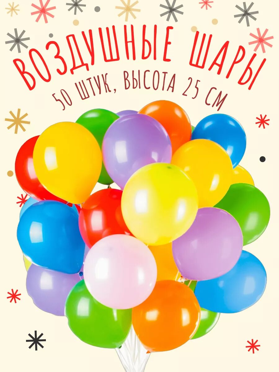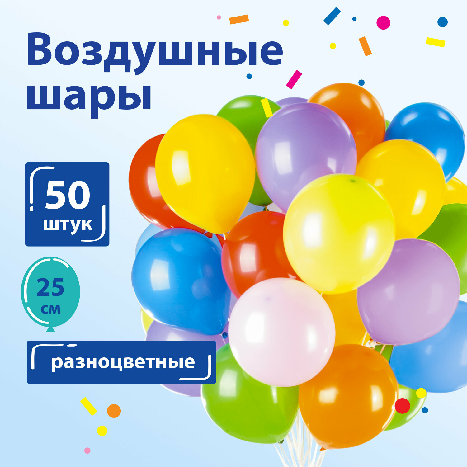 Купить Воздушные шары для праздника / воздушные шарики набор на день рождения Золотая Сказка, 10" (25 см), Комплект 50 штук, ассорти 10 цветов, пакет